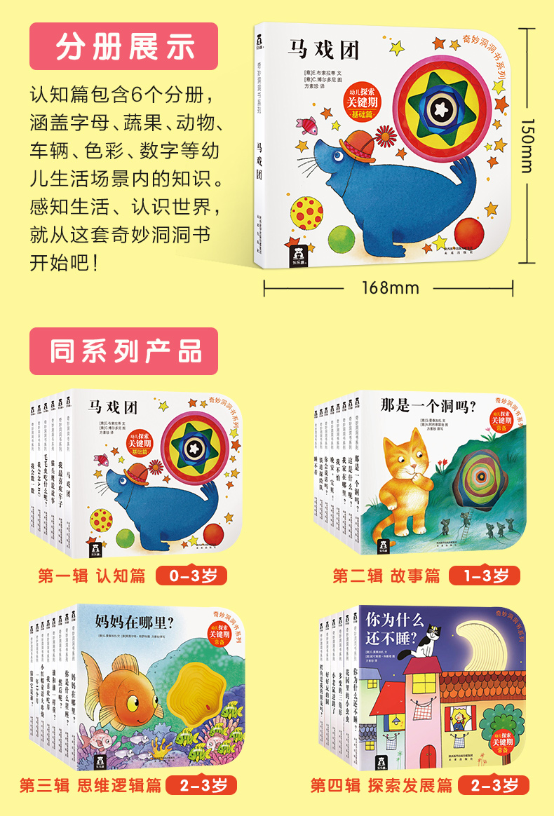 【乐乐趣六册】低幼儿童撕不烂奇妙洞洞书,采用加厚纸板,防水,不易坏,创意奇妙的各种洞洞,让宝宝在快乐游戏中融入对大自然的认知。【赠运费险】