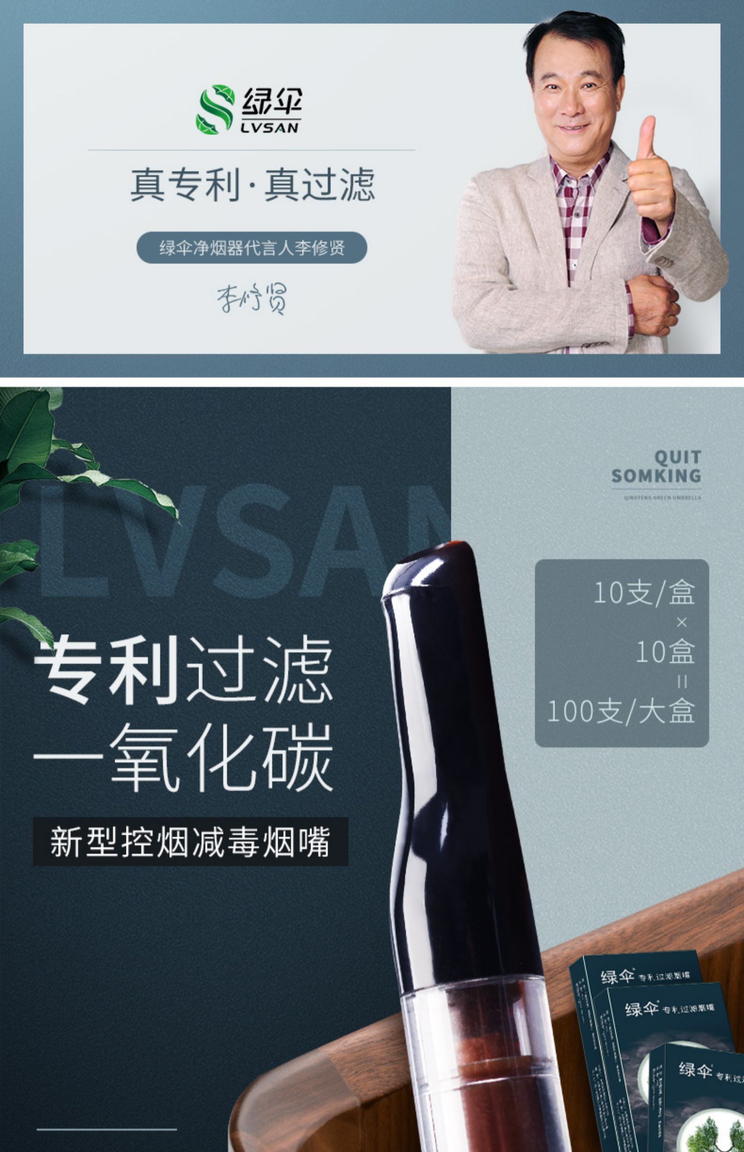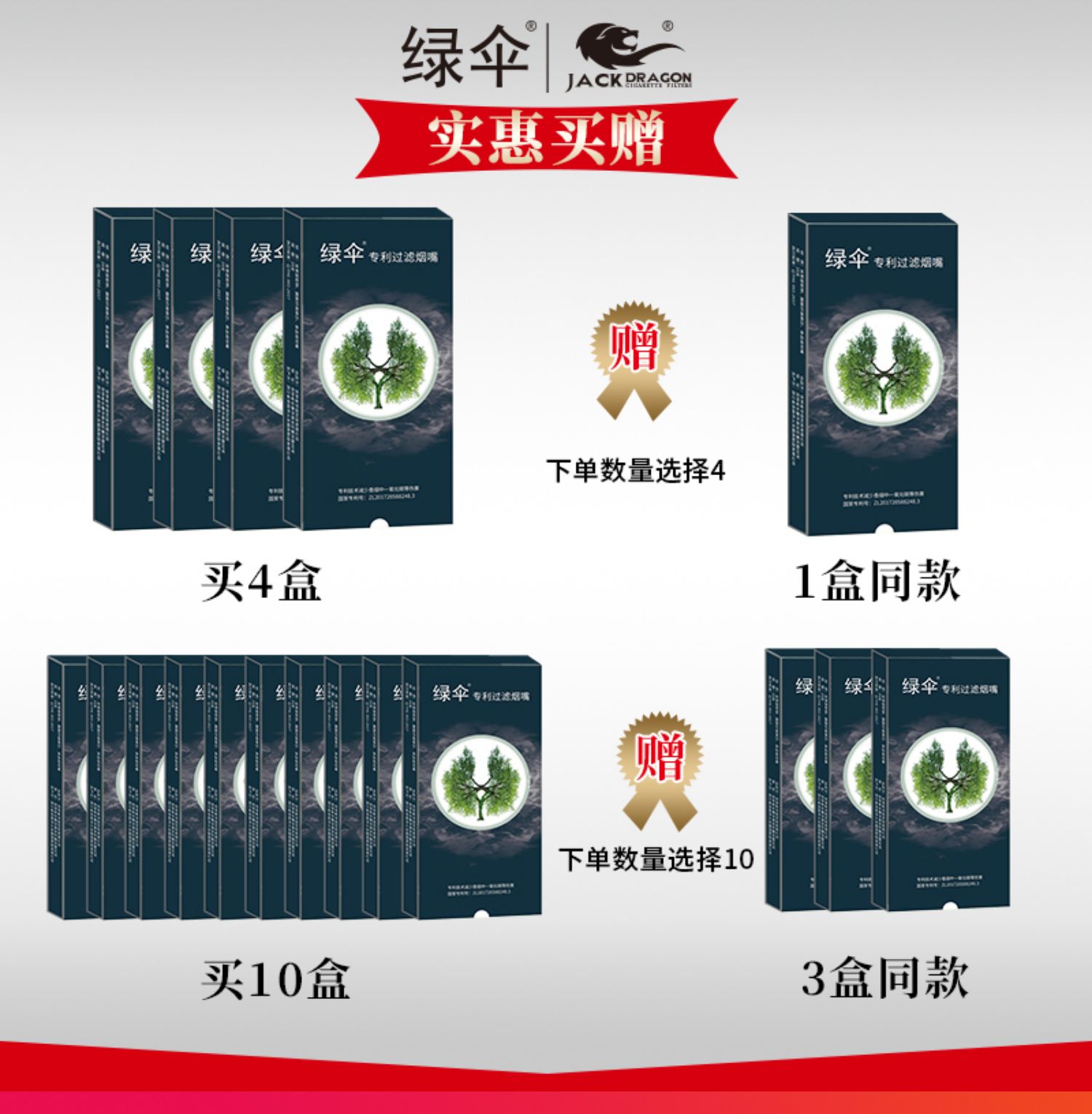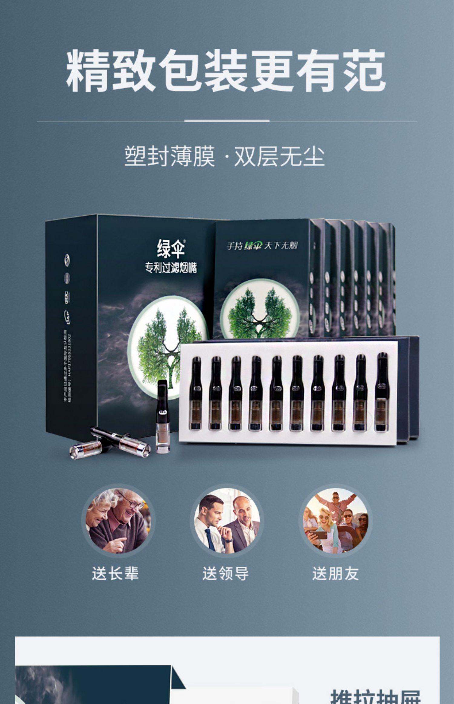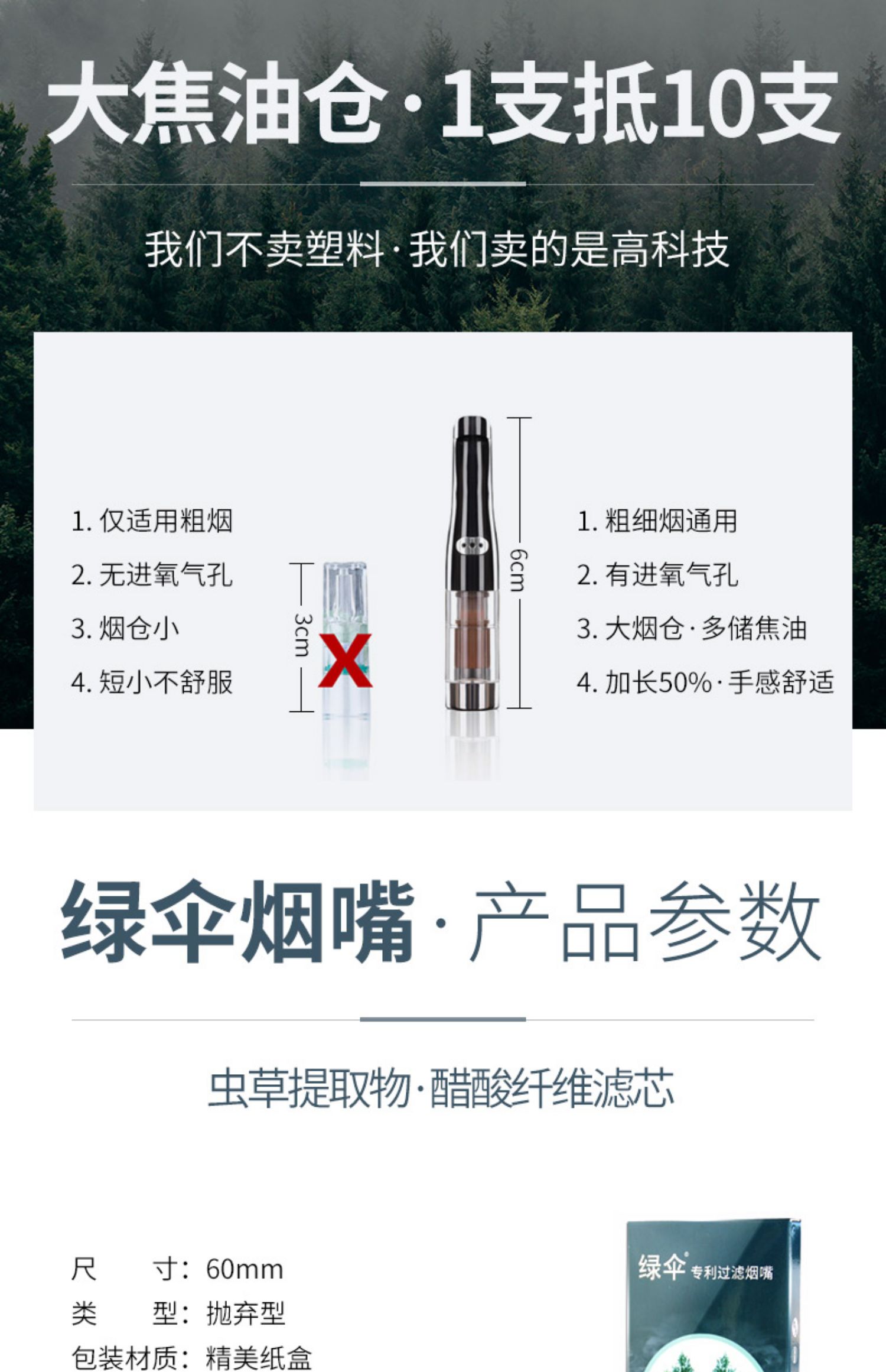 绿伞滤护二合一香烟伴侣,内置虫草精华,醋酸纤维滤芯,饲喂微孔双重过滤,强效过滤,进氧气孔,粗细通用,安全无异味,让烟民健康是我们的使命。【赠运费险】