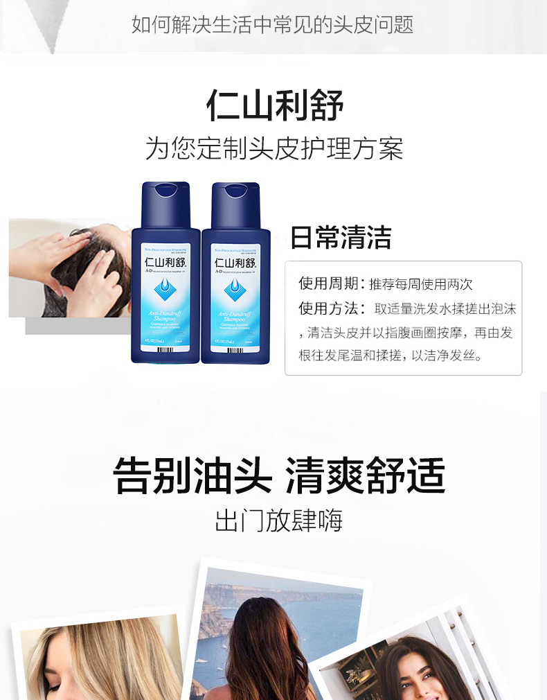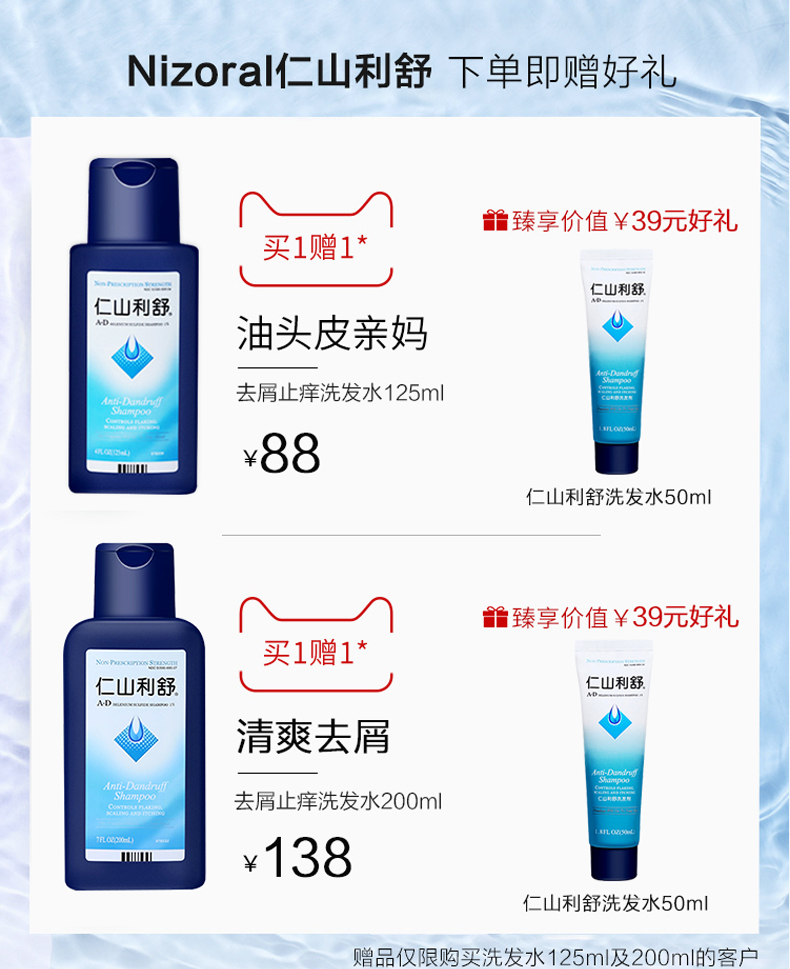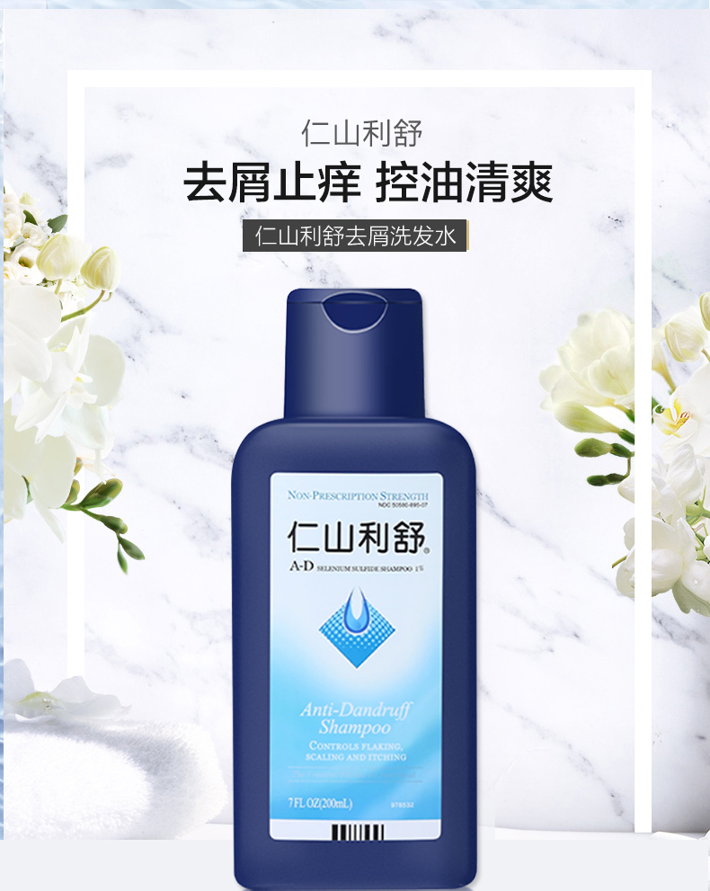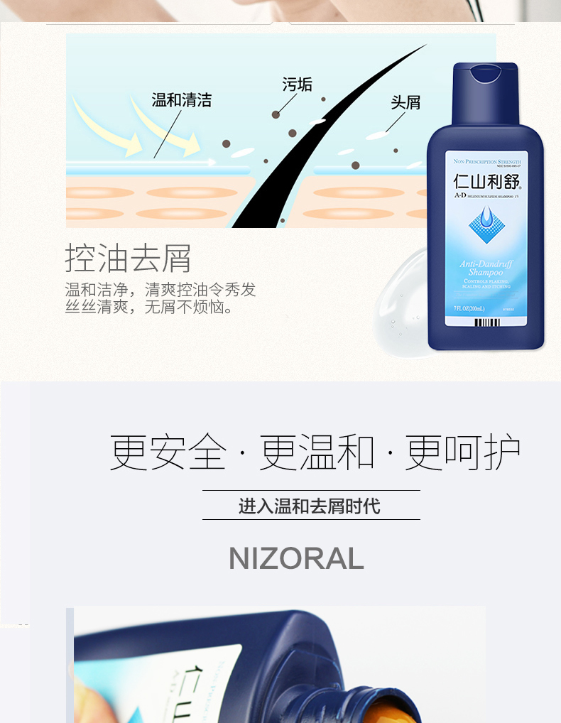 【天猫旗舰店】仁山利舒美国Nizoral强效去屑配方,专治头屑反复,多头屑,配方温和,舒缓净屑,清爽控油,发感清爽,发丝干净,轻盈蓬松,畅销八十多个国家,线下各大spa发廊有售,轻松告别头屑满天飞!