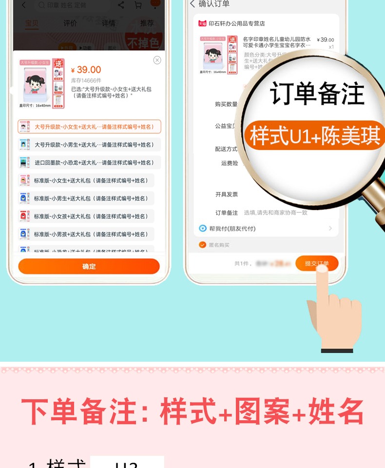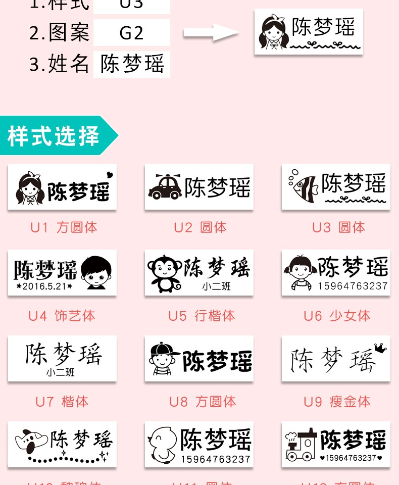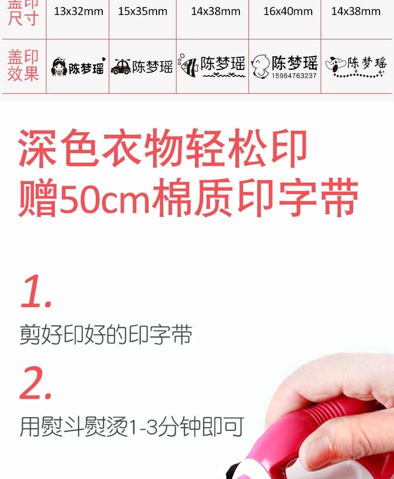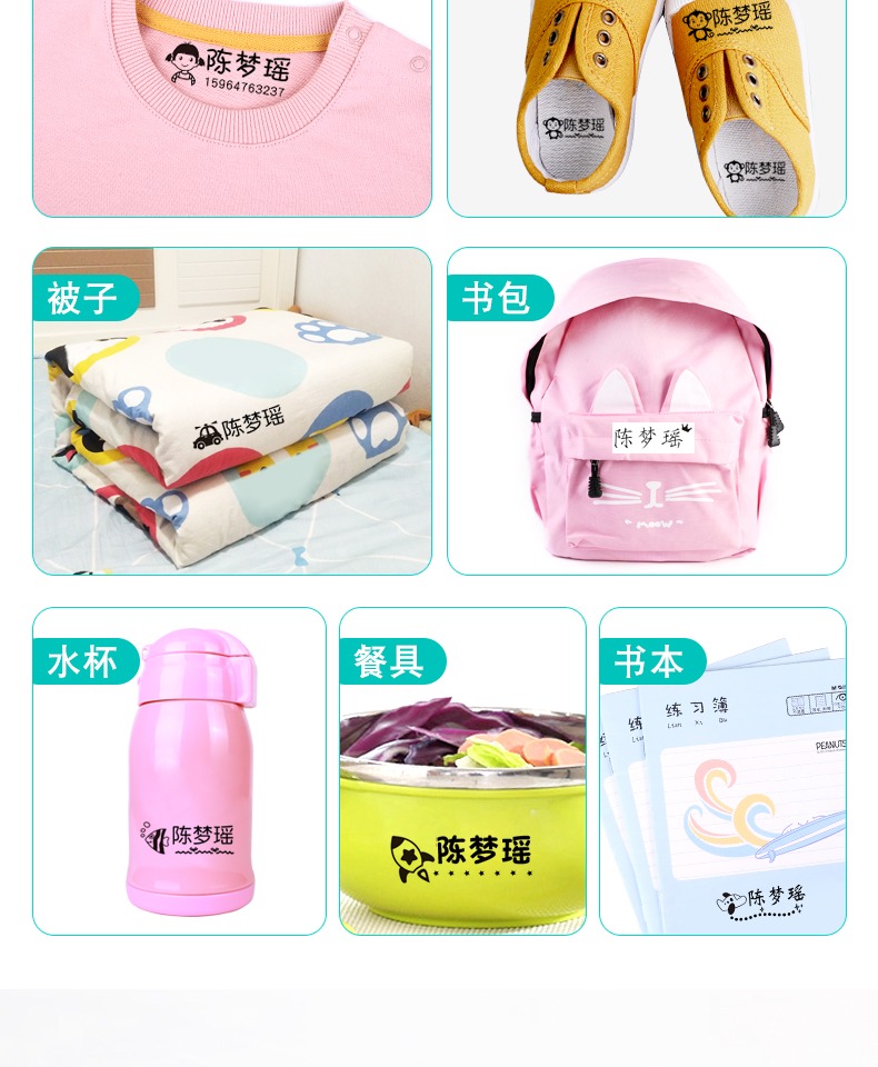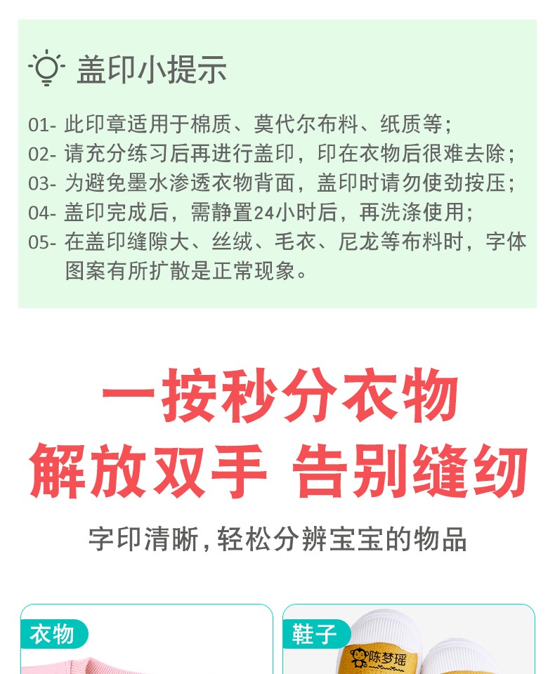 宝宝专属印章,轻松解决用品不混淆,告别裁缝刺绣,轻轻一按,方便快捷,24小时,水洗不易褪色,衣物、课本都能使用~