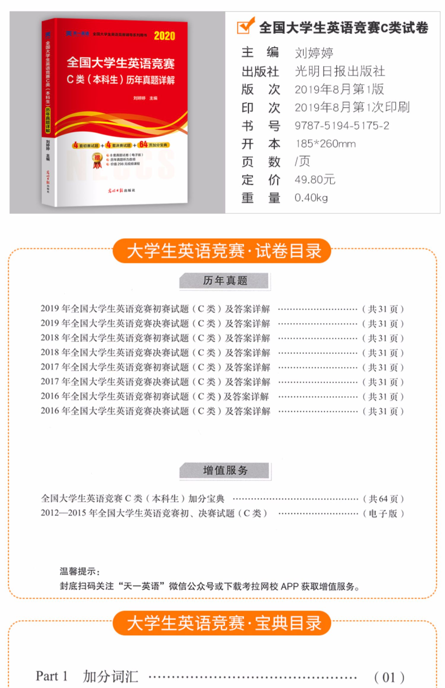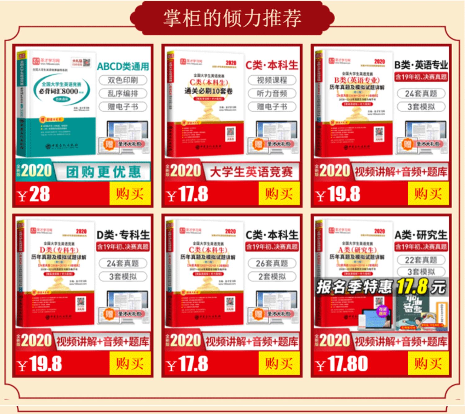 【全套4本】2020全国大学生英语竞赛C本科生生题库,历年真题详解,赠送精讲视频,高效学习内容,助力考研。