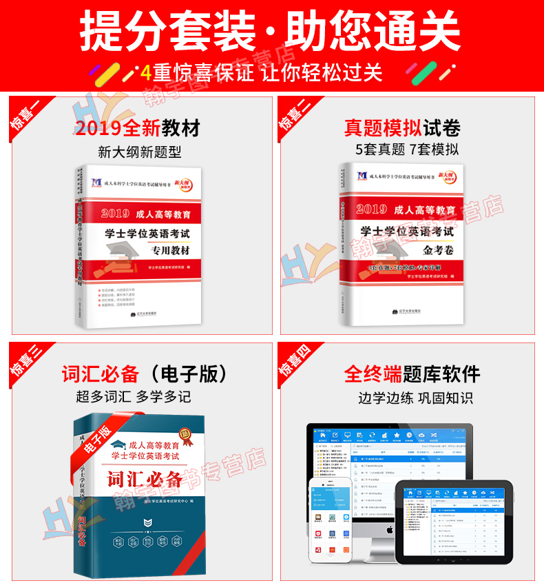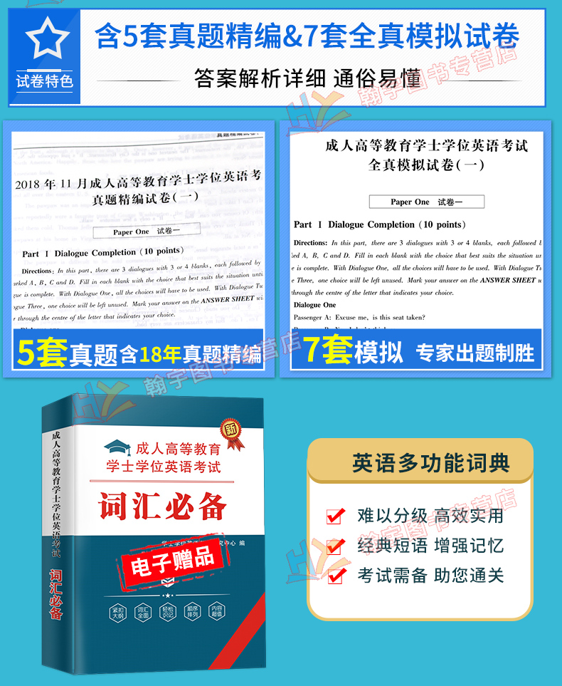 【全国通用】全套2本,备考2020成人高等教育学士学位英语考试,【超值赠品】3重精心大礼包,让你考试轻松过关!