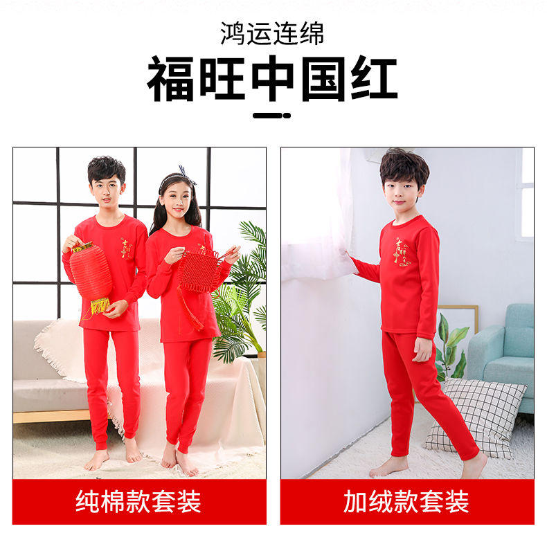 本命年大红色儿童内衣套装,优质纯棉,加绒保暖,亲肤柔软,手感细腻!鸿运本命年,好运一整年!【赠运费险】