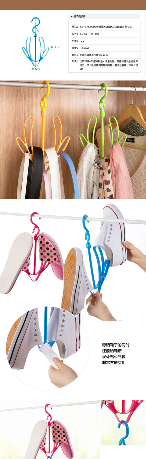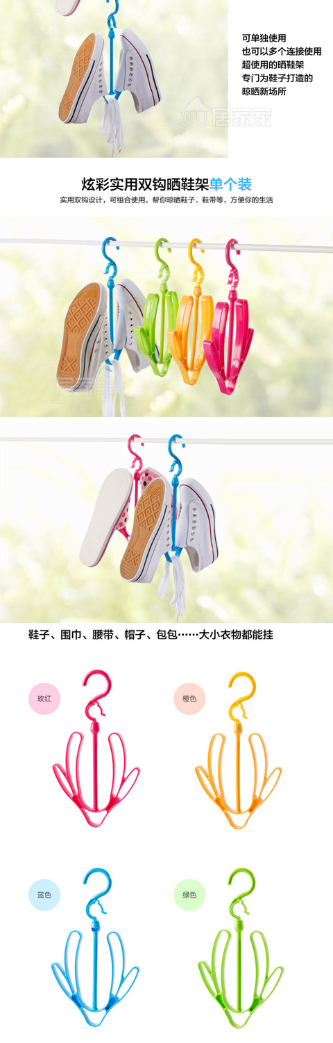 【超值三个装】采用pp材质,结实耐用,承重力好防风、防脱钩、沥水速干,360度旋转挂钩晒鞋架,轻松解决晒鞋和空间烦恼,居家寝室必备哦~