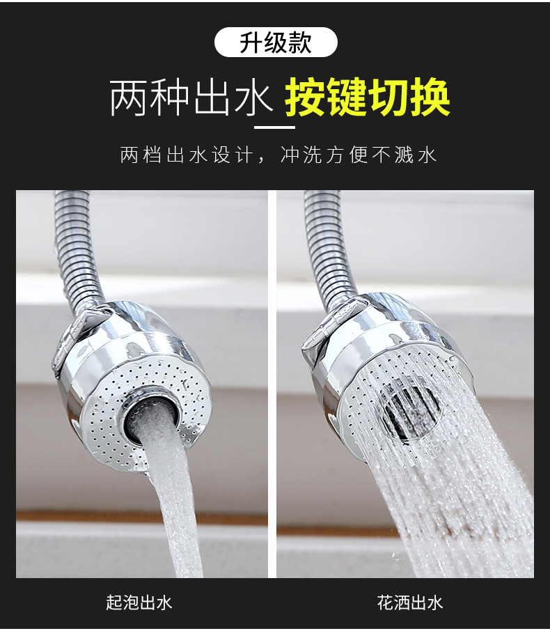 【买一送四】超级火的旋转水龙头,多种出水方式,360度旋转设计,安装简单,花洒模式出水柔和不飞溅,起泡模式有冲击力洗碗更干净,用过的都说好~速度抢