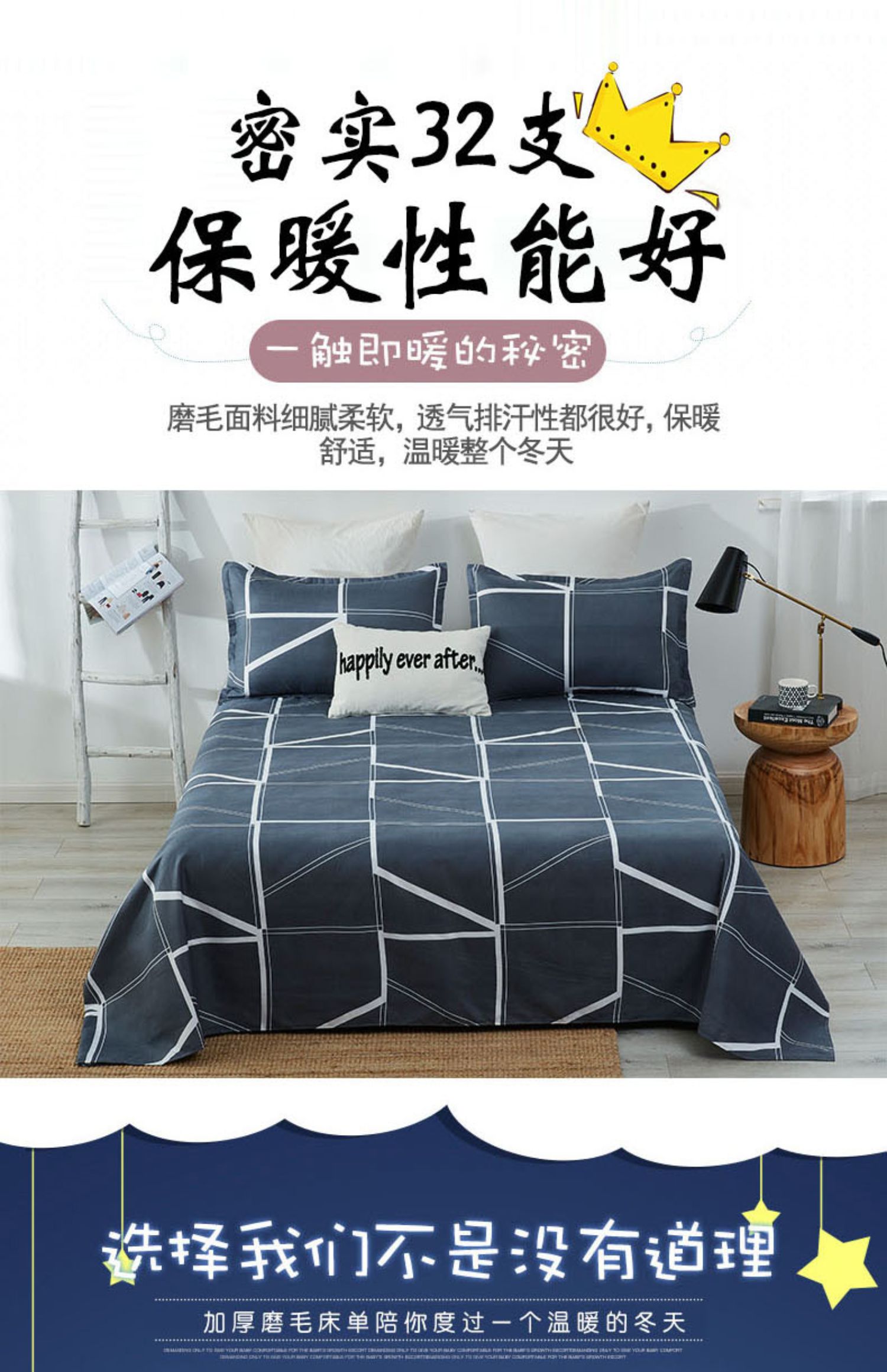 冬季磨毛加厚ins风床单单件三件套随便选,多种颜色款式尺寸可选,亲肤舒适面料,手感柔软,承诺不缩水不起球!【赠运费险】