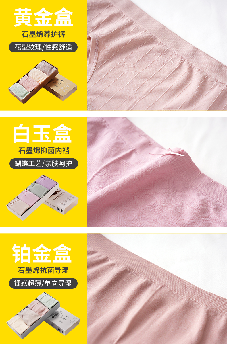 精选天然棉花,暖宫,柔软舒适,石墨烯抗菌认证,活性环保印染,透气易清洗,防漏面料,腰部不紧绷,无勒痕,经期专属设计,安全一整夜,给你更安心的保护~