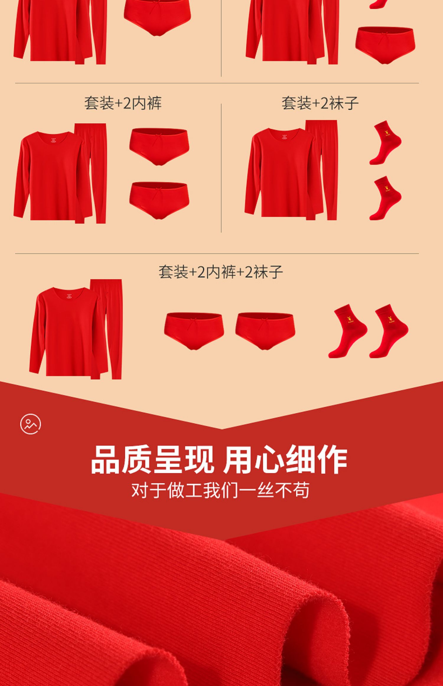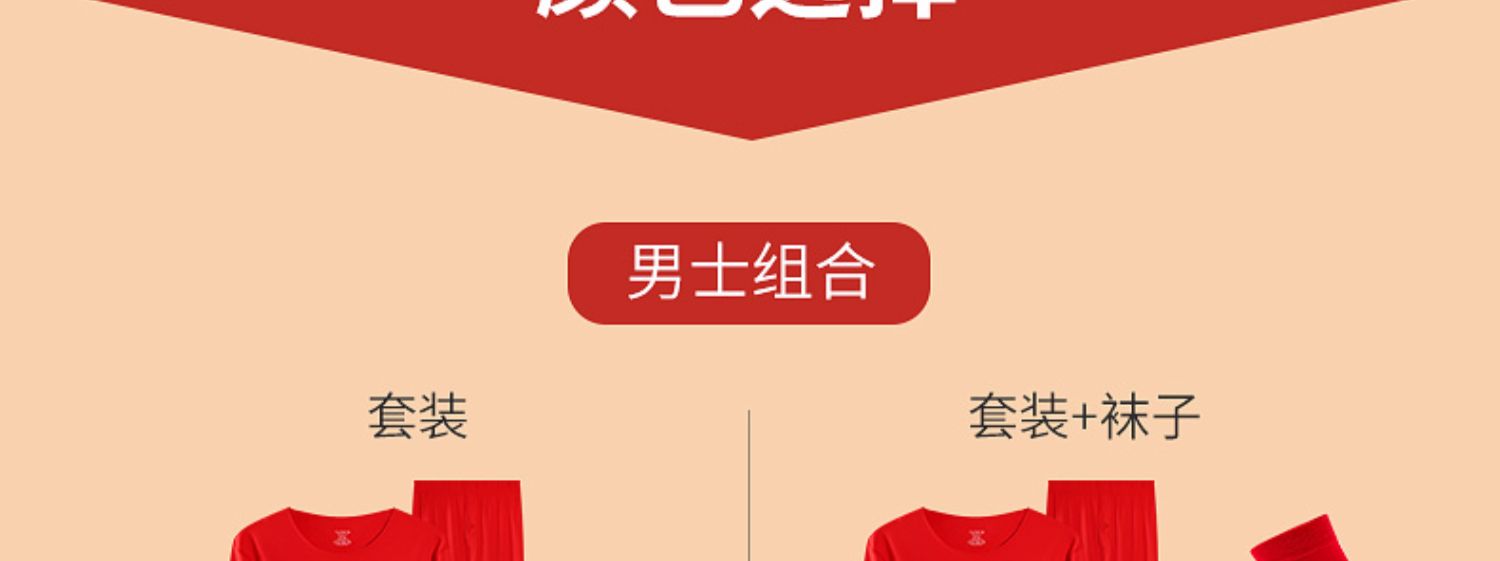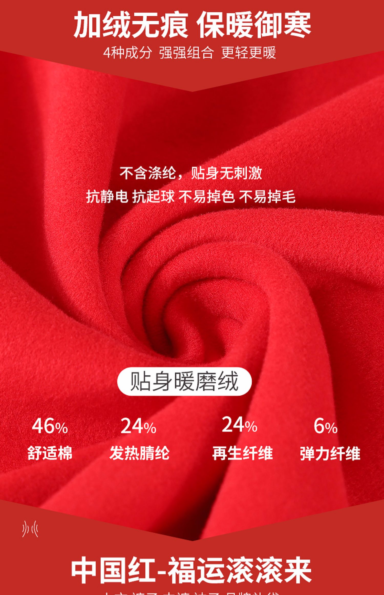 【抖音爆款】钟爱大红,鸿运喜庆。强强组合,更轻更暖。不含涤纶,无痕剪裁,不勒肤,贴身无刺激,抗静电,抗起球,不易掉色,不易掉毛。给您最舒适的体验,价格亏!