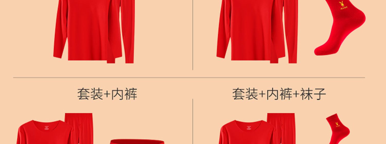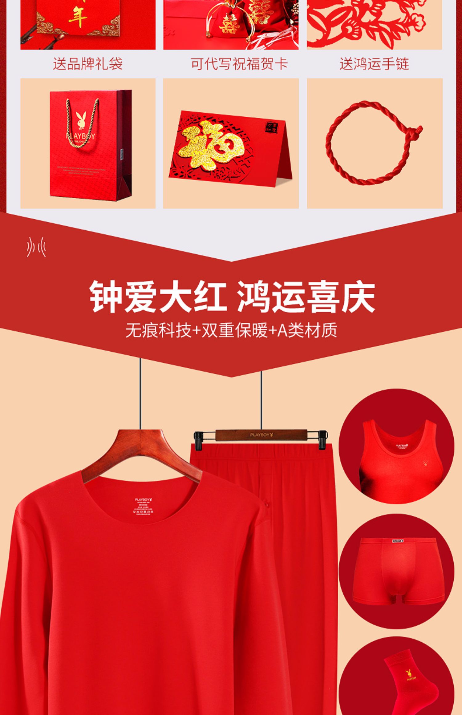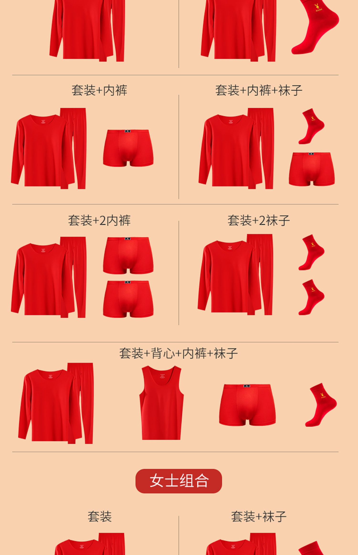 【抖音爆款】钟爱大红,鸿运喜庆。强强组合,更轻更暖。不含涤纶,无痕剪裁,不勒肤,贴身无刺激,抗静电,抗起球,不易掉色,不易掉毛。给您最舒适的体验,价格亏!