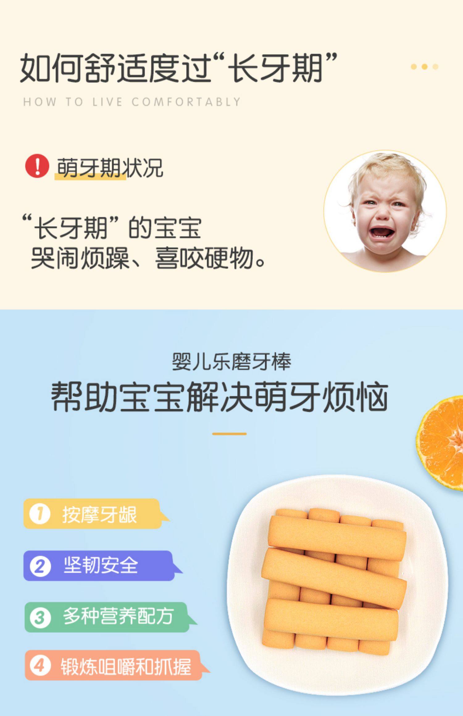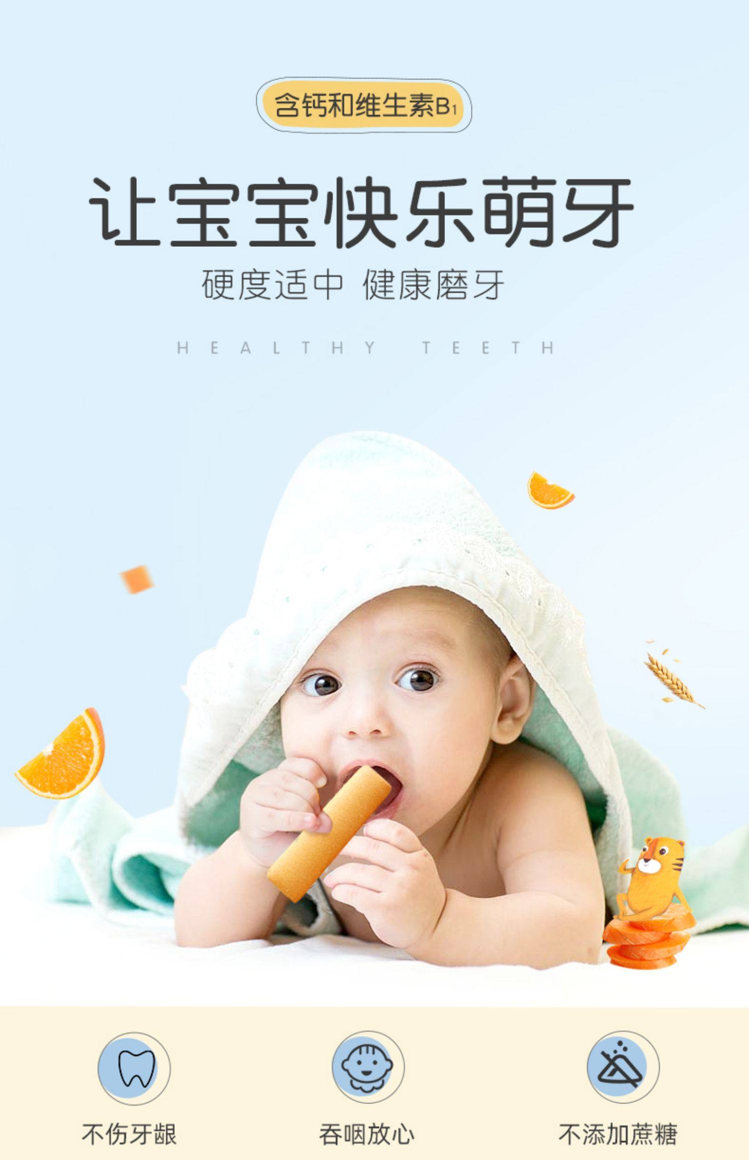【一款符合国家婴标的磨牙棒】磨牙好伴侣,高钙磨牙棒。硬度适中,不伤牙龈。无添加,无防腐。有效按摩牙床,刺激乳牙萌出。70年母婴品牌,精致呵护宝宝健康成长。【赠运费险】
