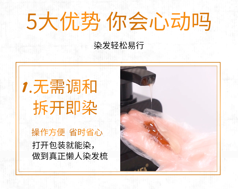 需调配,操作方便,只黑头发不黑头皮,温和不刺激,健康安全,轻松搞定染发