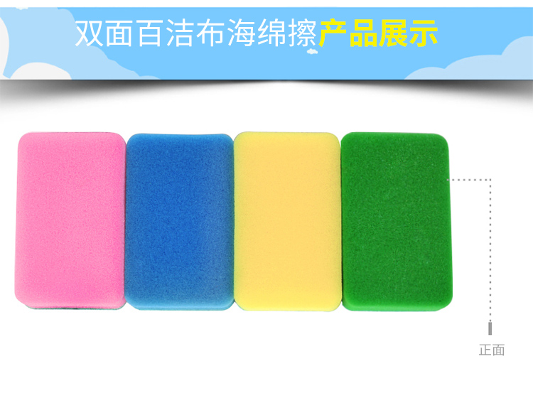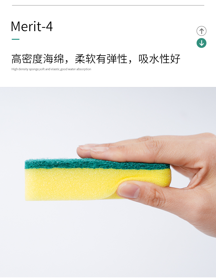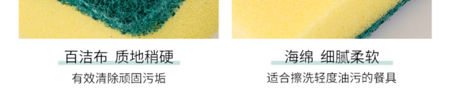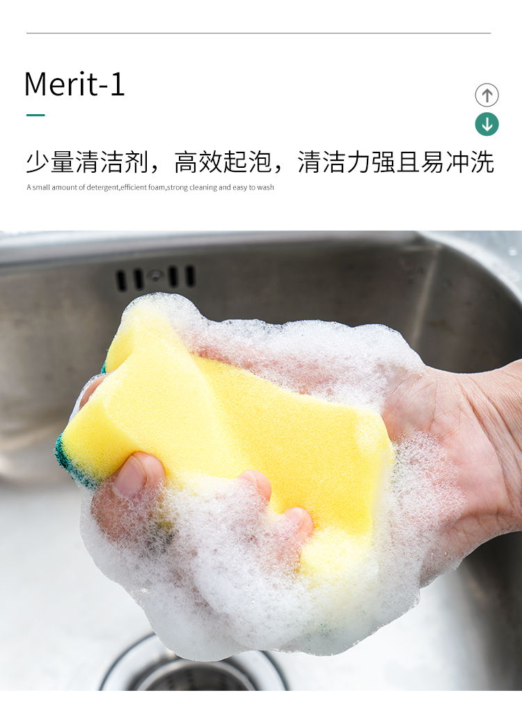 双层设计,强力去污,起泡率高,柔软有弹性,高强度海绵设计,四色搭配,适用范围广,每家厨房,值得拥有!
