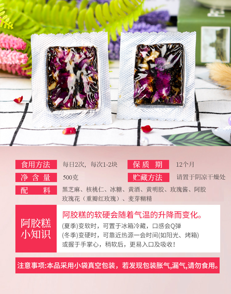 【纯手工阿胶糕】选用正品阿胶打粉,精选上等核桃仁,富含丰富的营养素,有益脑的营养补充,黑芝麻含有大量的脂肪和蛋白质,绍兴黄酒合成,坦诚做事,真诚待人,做有技术的阿胶糕。