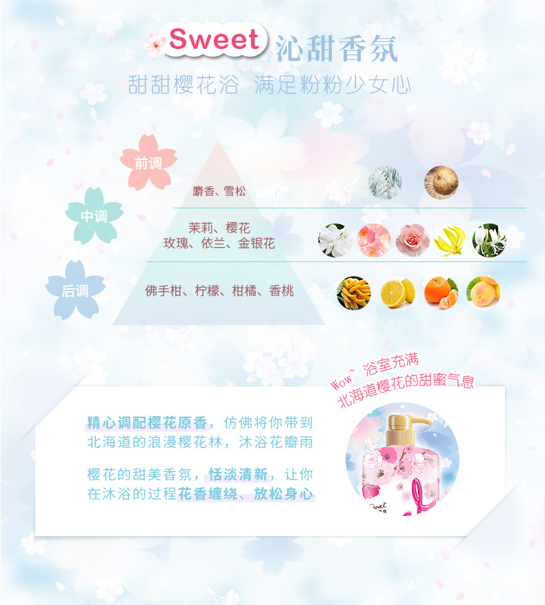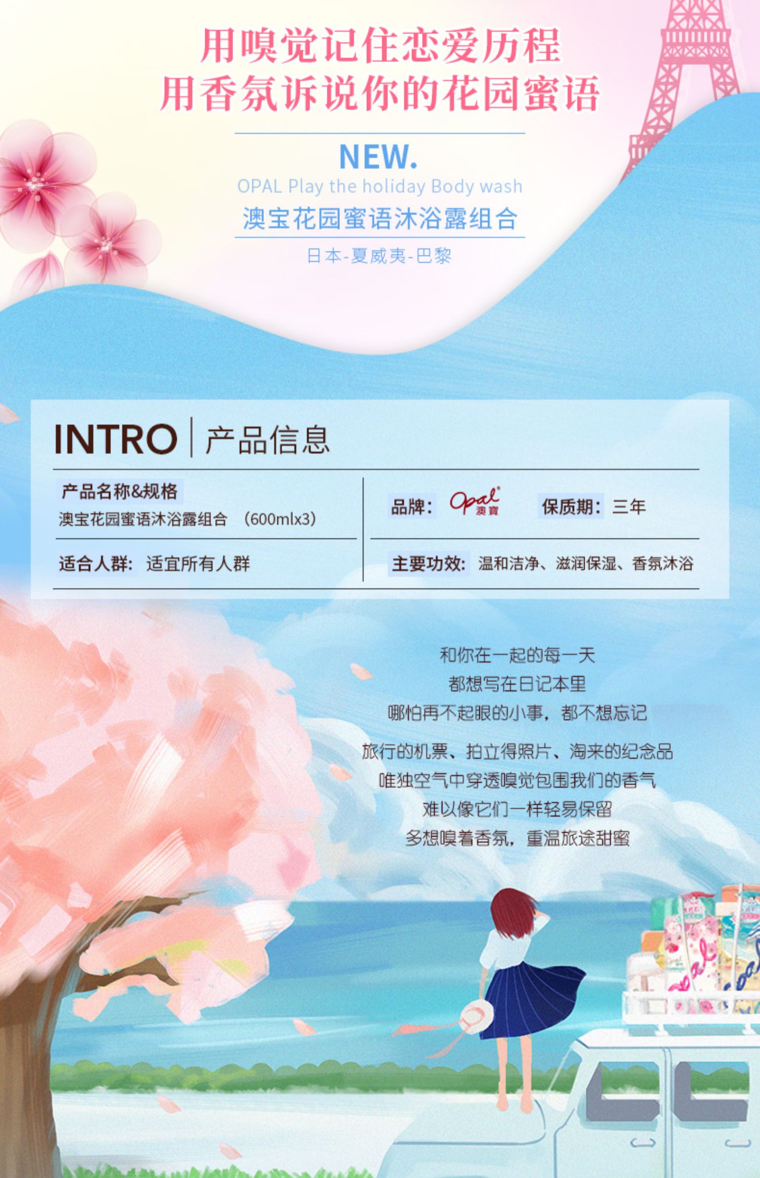 超值3瓶装沐浴露,天然精粹,持久留香,补水保湿,改善皮肤,柔滑细腻,改善暗黄,感受芬香泡泡的沐浴趣味。