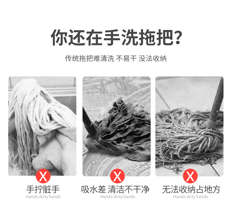 【懒人神器】家用免手洗拧水拖把轻便省力