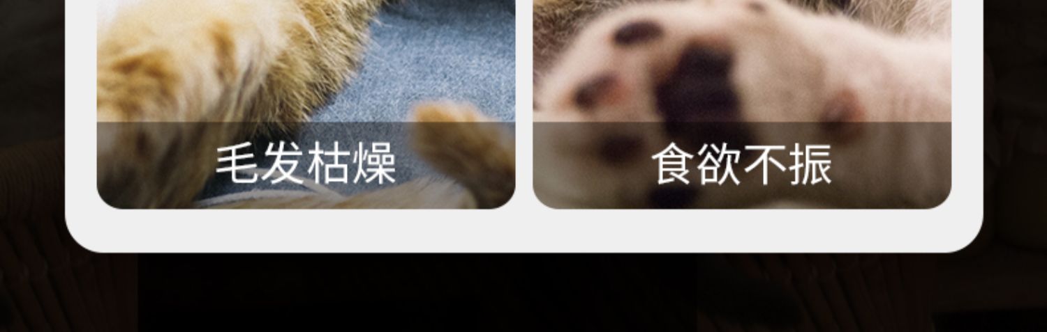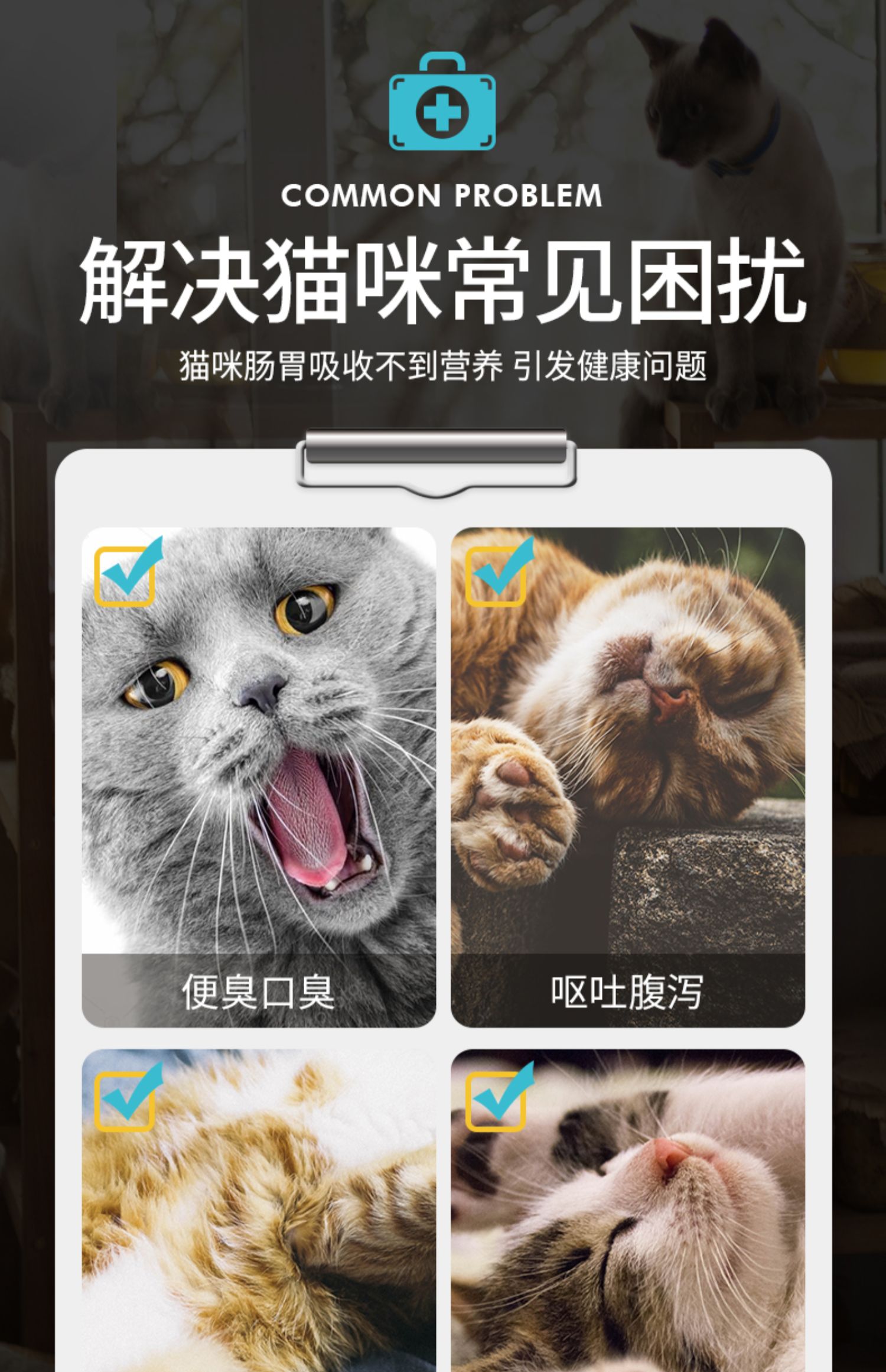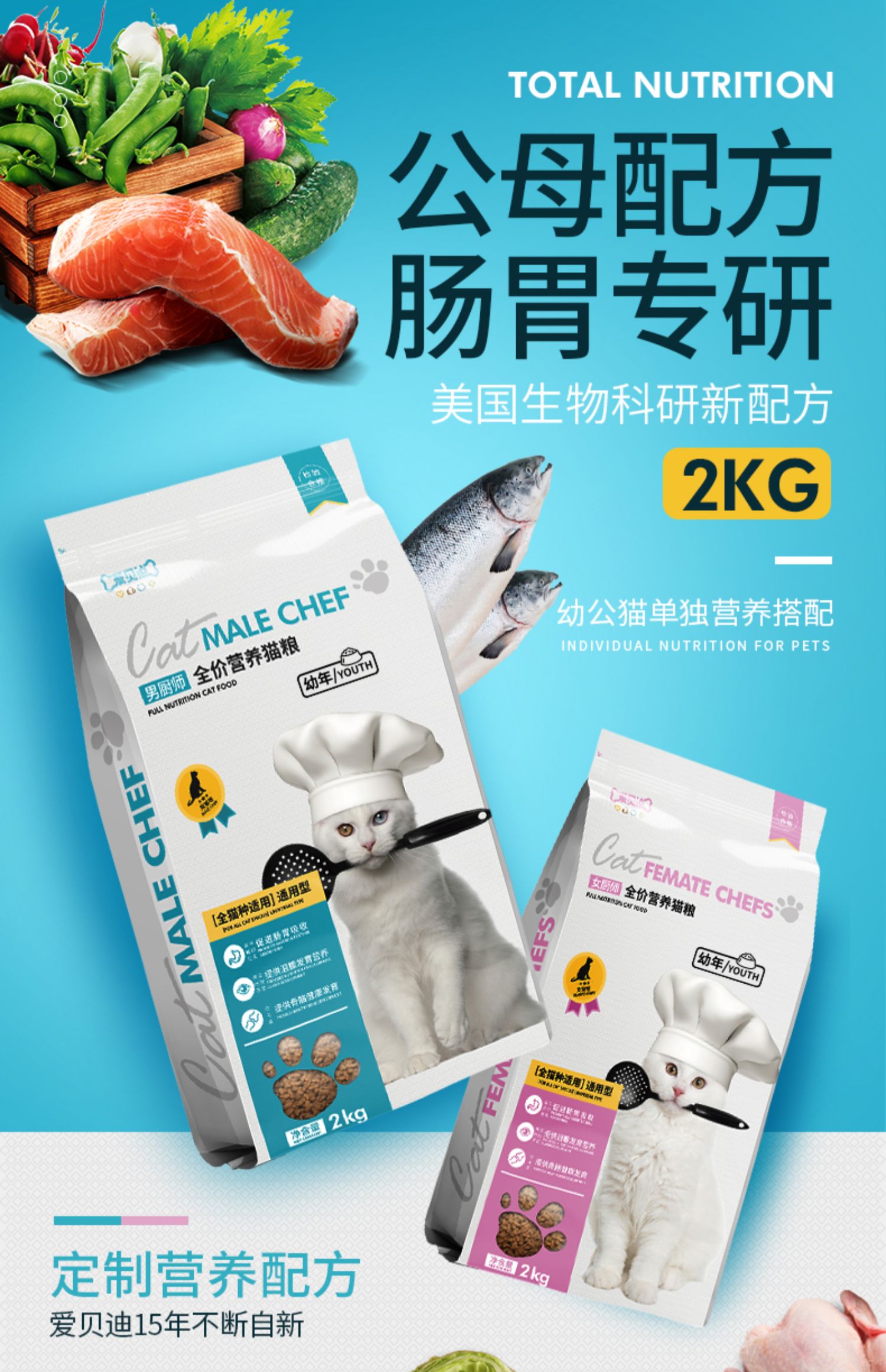 选取自然食材,健齿小鱼仔颗粒,洁净牙齿适口性佳,公母配方肠胃专研,公猫升级营养,增强免疫力,肌肉发达,体格健壮;母猫肠胃减负,促进肠道健康,毛发柔软,身材纤细,实现营养划分