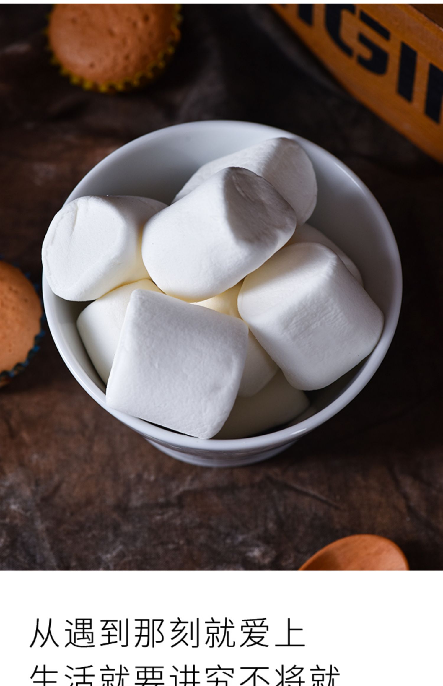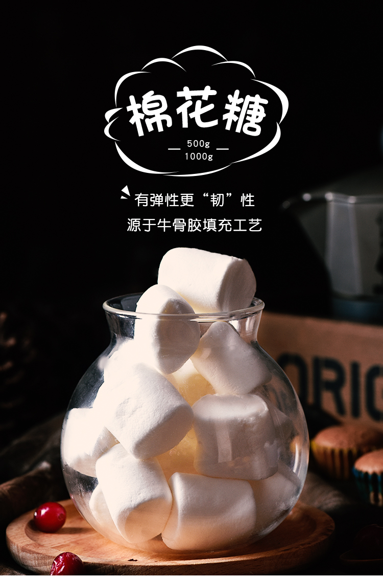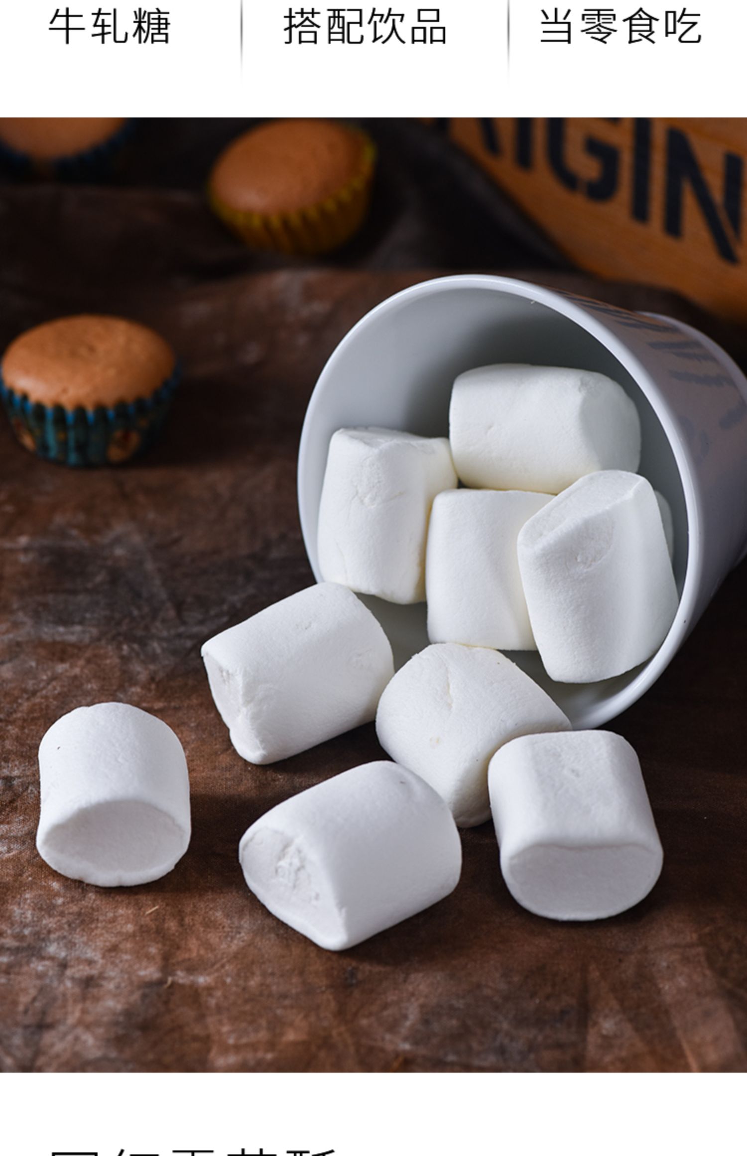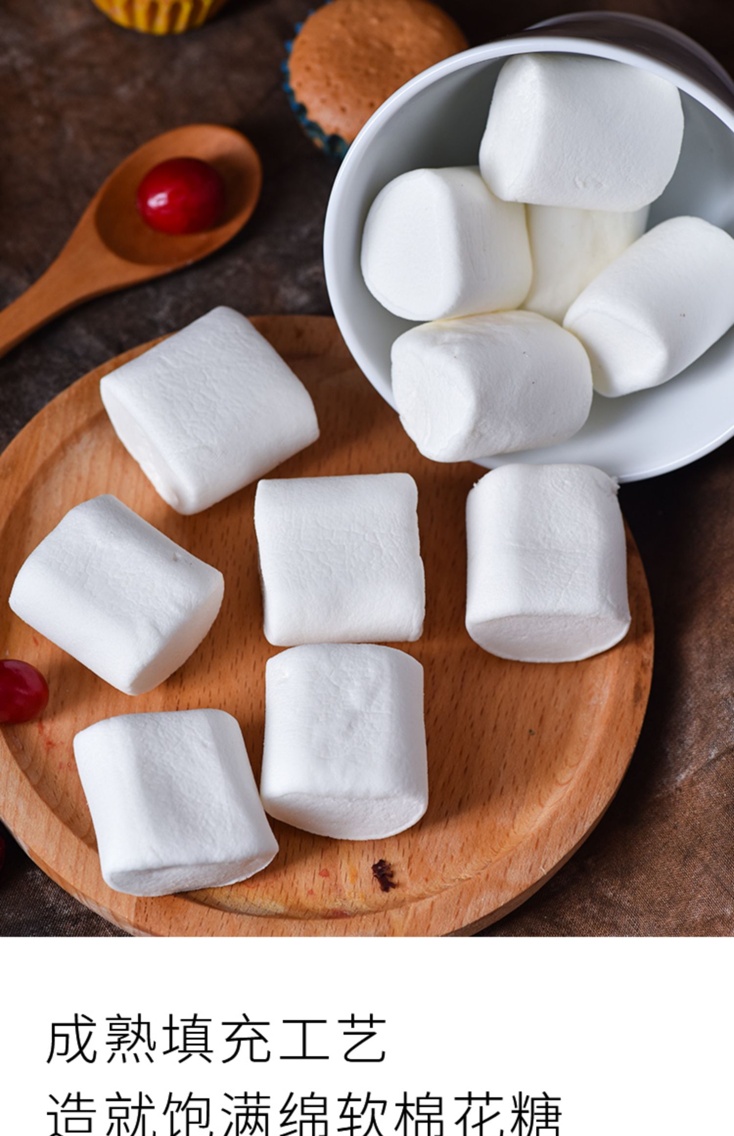 蓬松香糯,预热即融,颗大量足的棉花糖~弹性十足,不粘牙、不腻口,还可以用来做牛轧糖、雪花酥等,醇香不腻,拉丝效果理想哦~1斤量太便宜了,仅要8.5元,速抢!