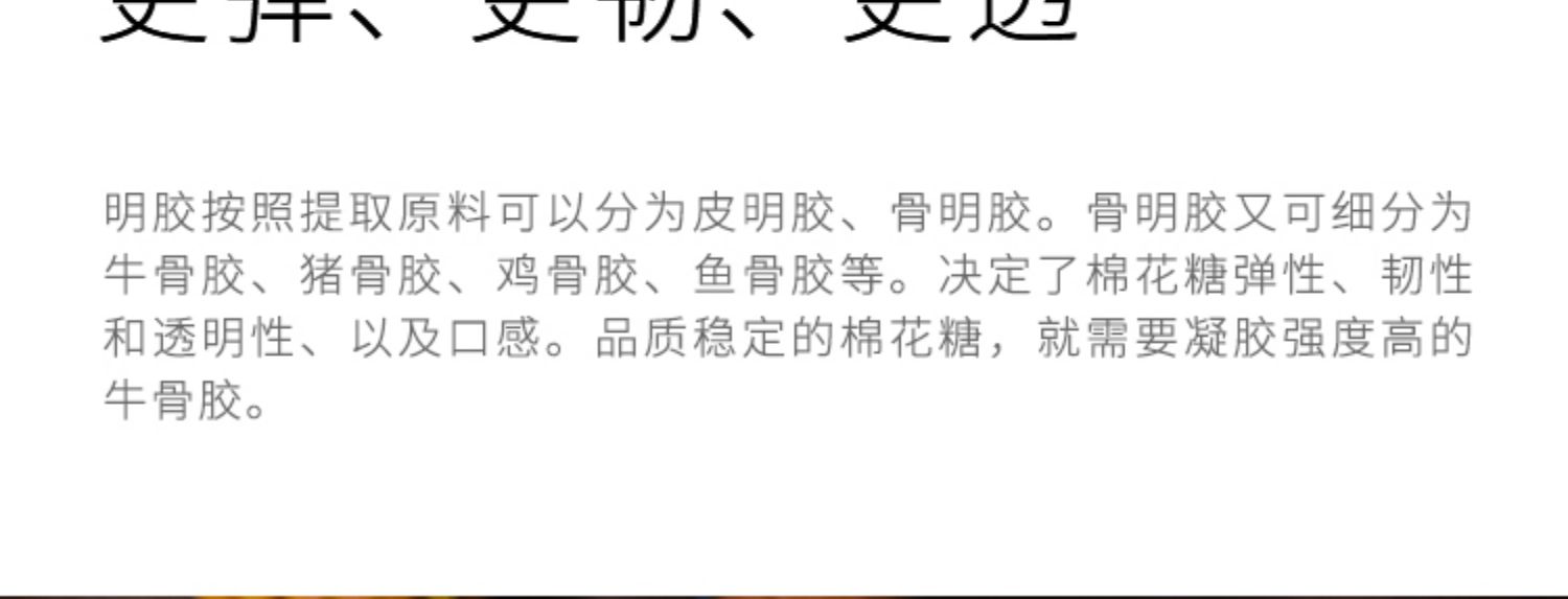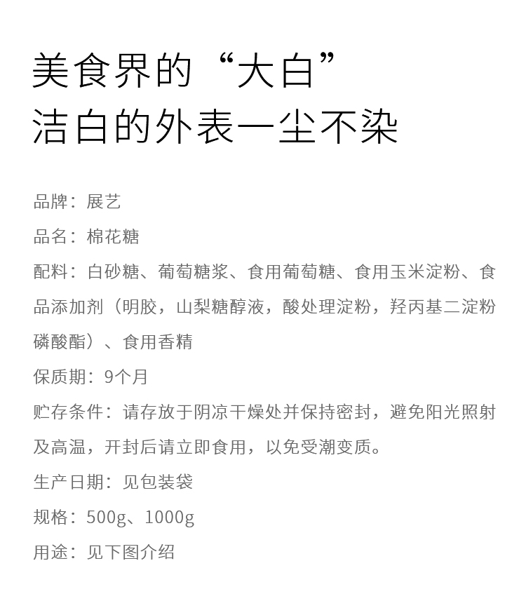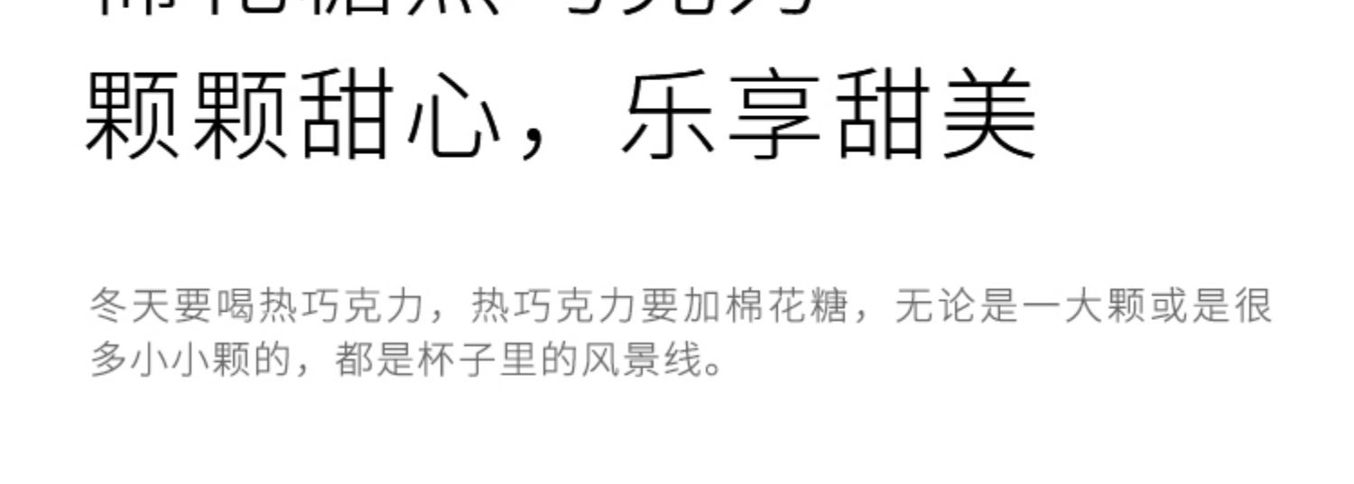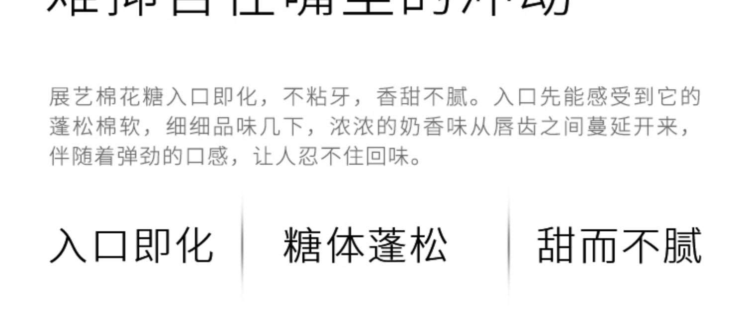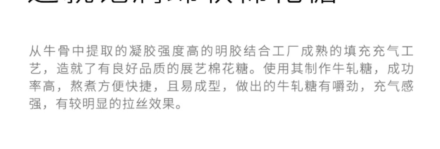 蓬松香糯,预热即融,颗大量足的棉花糖~弹性十足,不粘牙、不腻口,还可以用来做牛轧糖、雪花酥等,醇香不腻,拉丝效果理想哦~1斤量太便宜了,仅要8.5元,速抢!