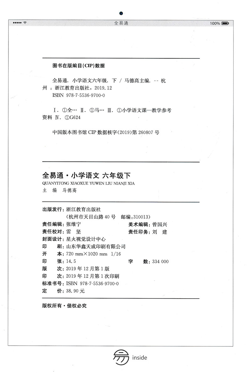 【赠基本知识归纳收纳】2020春版全易通六年级下册语文部编人教版RJ,根据“教育部组织编写”的新教材编写,与小学4年级下册课本同步辅导,轻松图解,秒读、深挖知识点,达到事半功倍的效果!