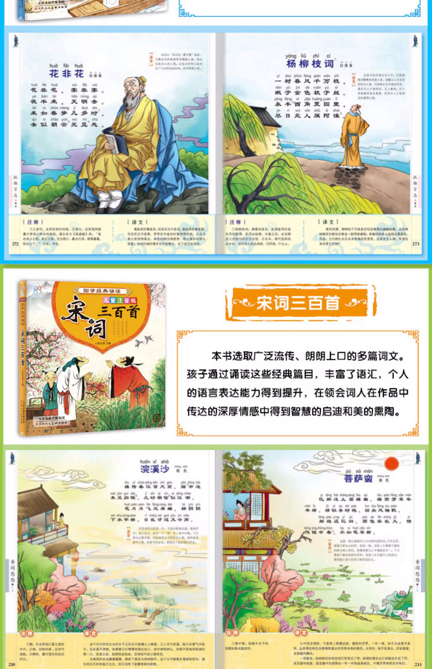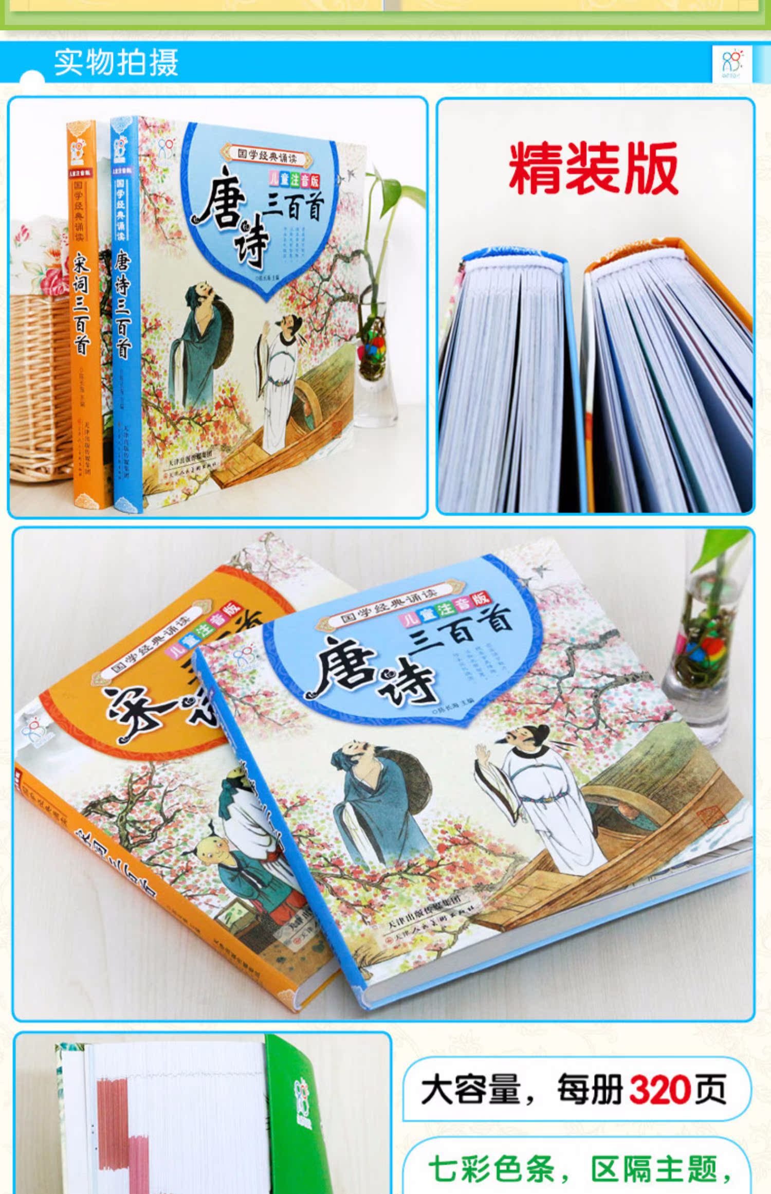 唐诗宋词(2册)精装版国学经典童书籍全套,彩图注音版绘本图画书3-6-12岁儿童文学课外阅读中国古诗词读物,精装彩图注音版,培养孩子高尚的精神品格。