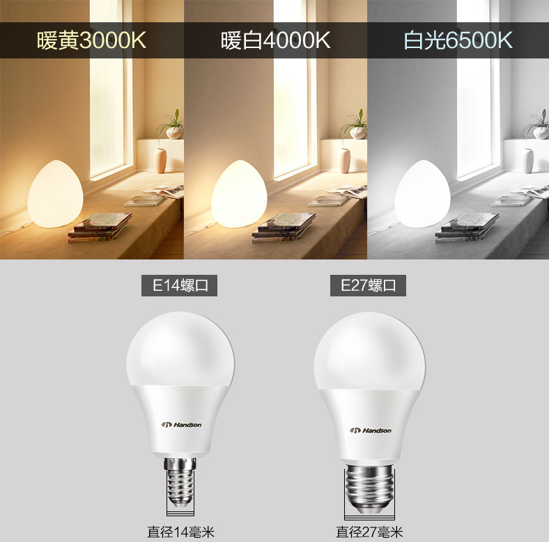 【汉德森灯泡,寿命长达3年】品质保证,即开即亮,节能更省电,抗雷击设计,使用寿命更长,多种规格可选【赠运费险】