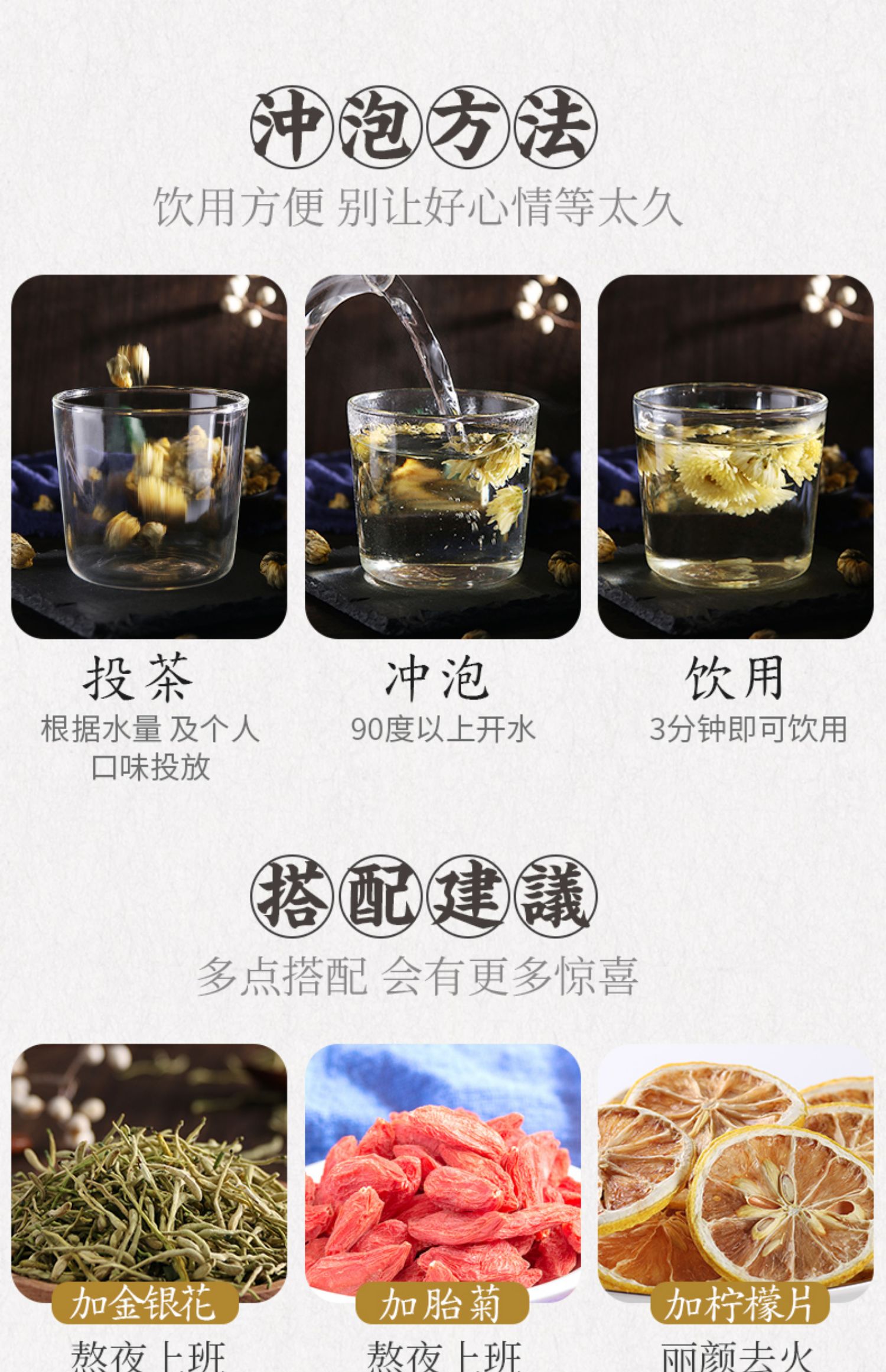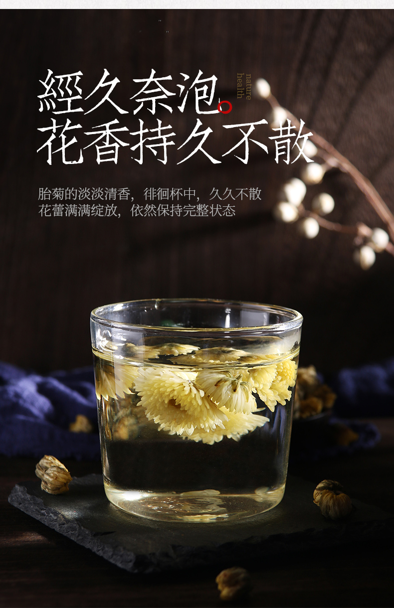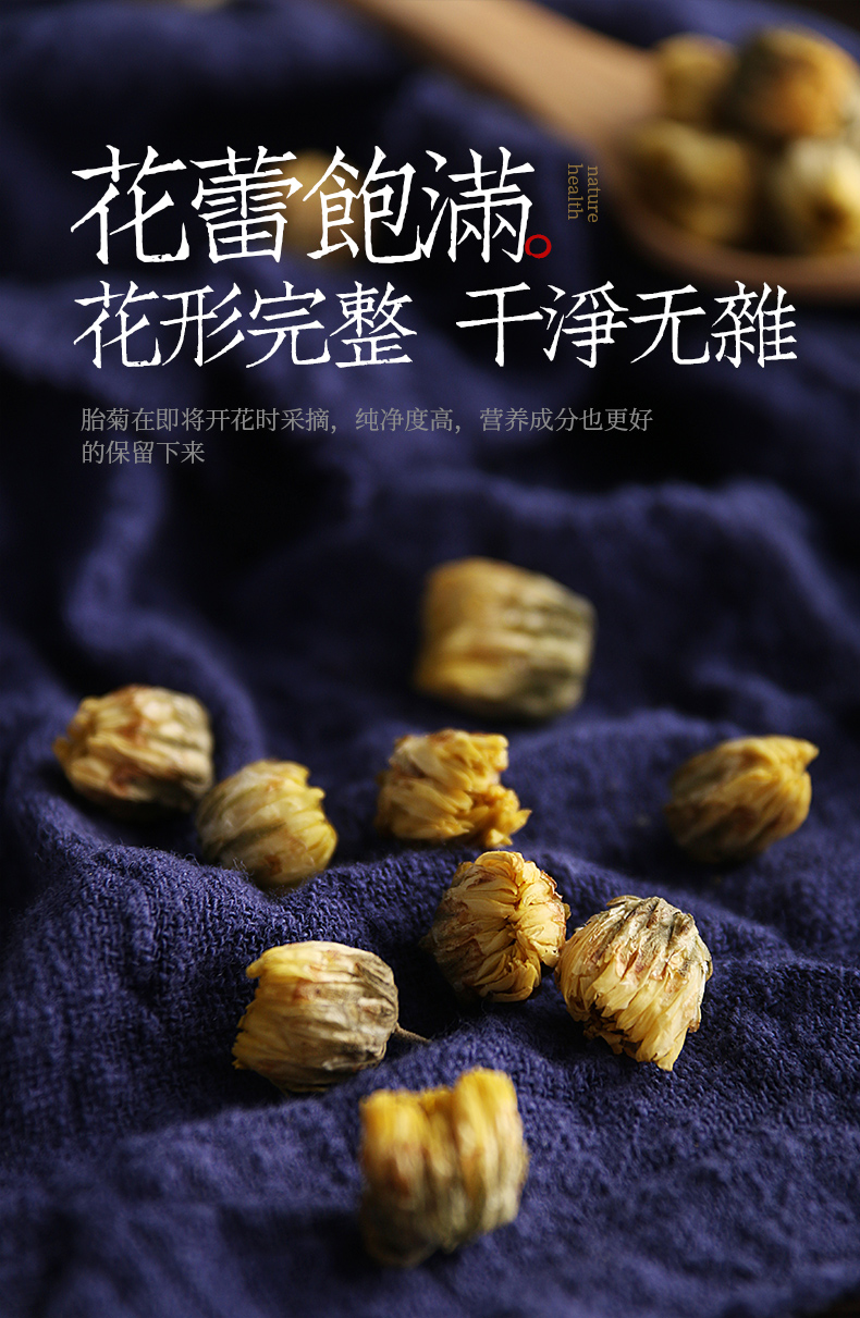 减火明眸,头采胎菊,清润身心,四季常备,品质精选,放心好茶。