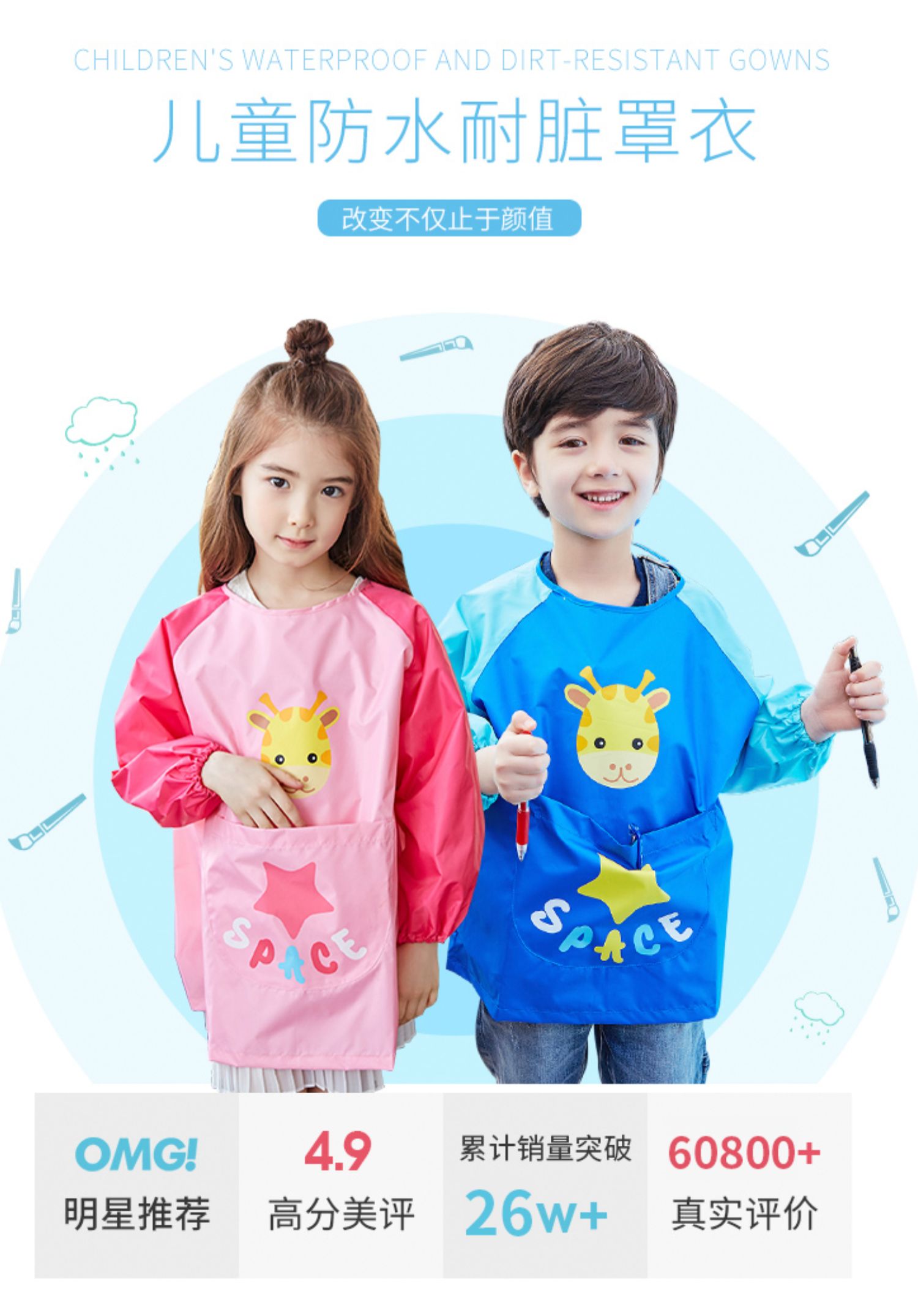 【OMG李维嘉推荐】《爸爸去哪儿5》嗯哼同款,A类高品质防水防污,易清洗,宝宝吃饭长袖罩衣围裙画画衣,正反两穿;累计销量突破8W件,2.5W妈妈们的高评分评价【赠运费险】