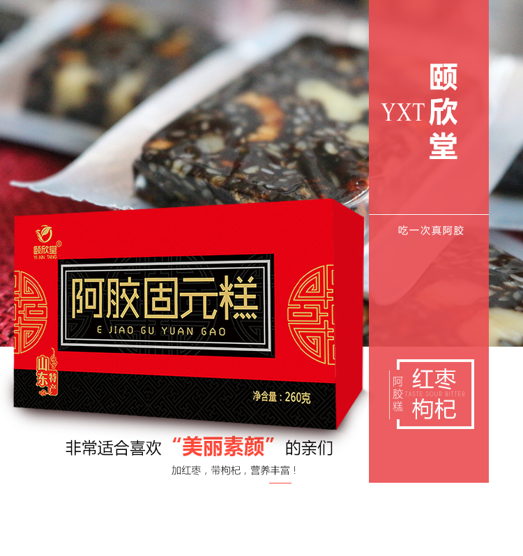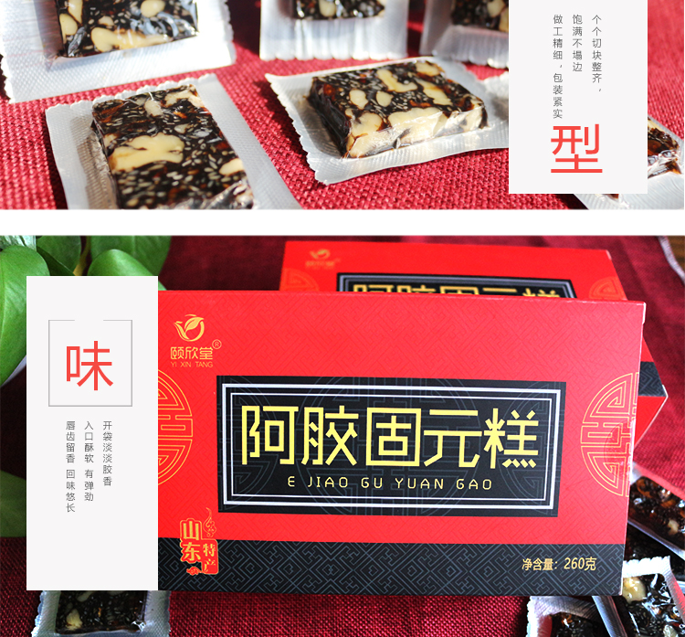 【拍三件39.9元!】颐欣堂即食阿胶糕260g,新鲜熬制,每天两片、补气养血、美容养颜、抗衰老,独立包装,干净卫生,食用方便,吃出女神好气色,包装高端大气,送礼必备