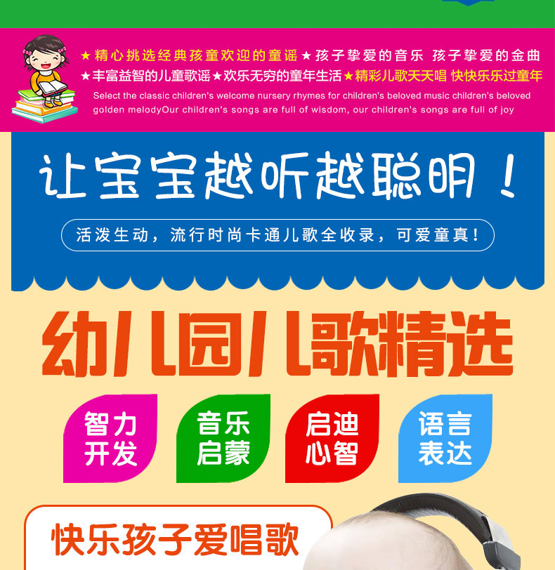 无损黑胶4CD,120首经典儿歌,支持车载电脑,智力开发,音乐启蒙,启迪心智,语言表达,培养宝宝全方位能力,培育聪明宝宝,宝宝早教更省心!