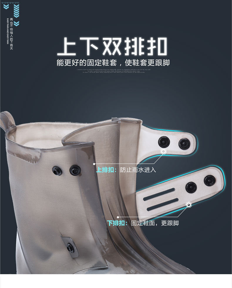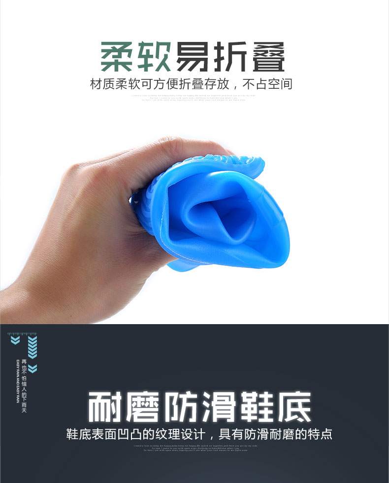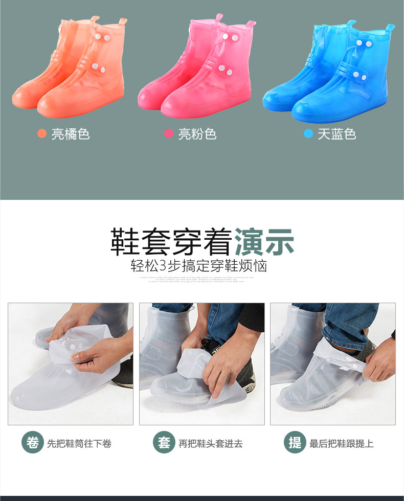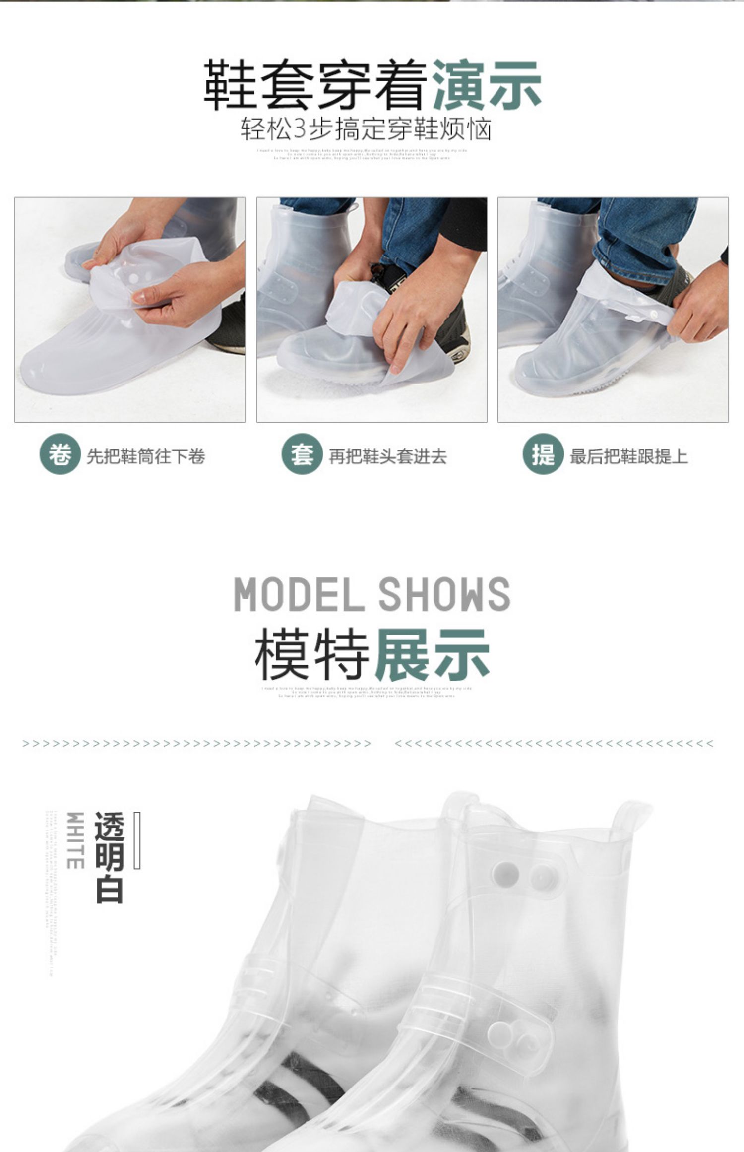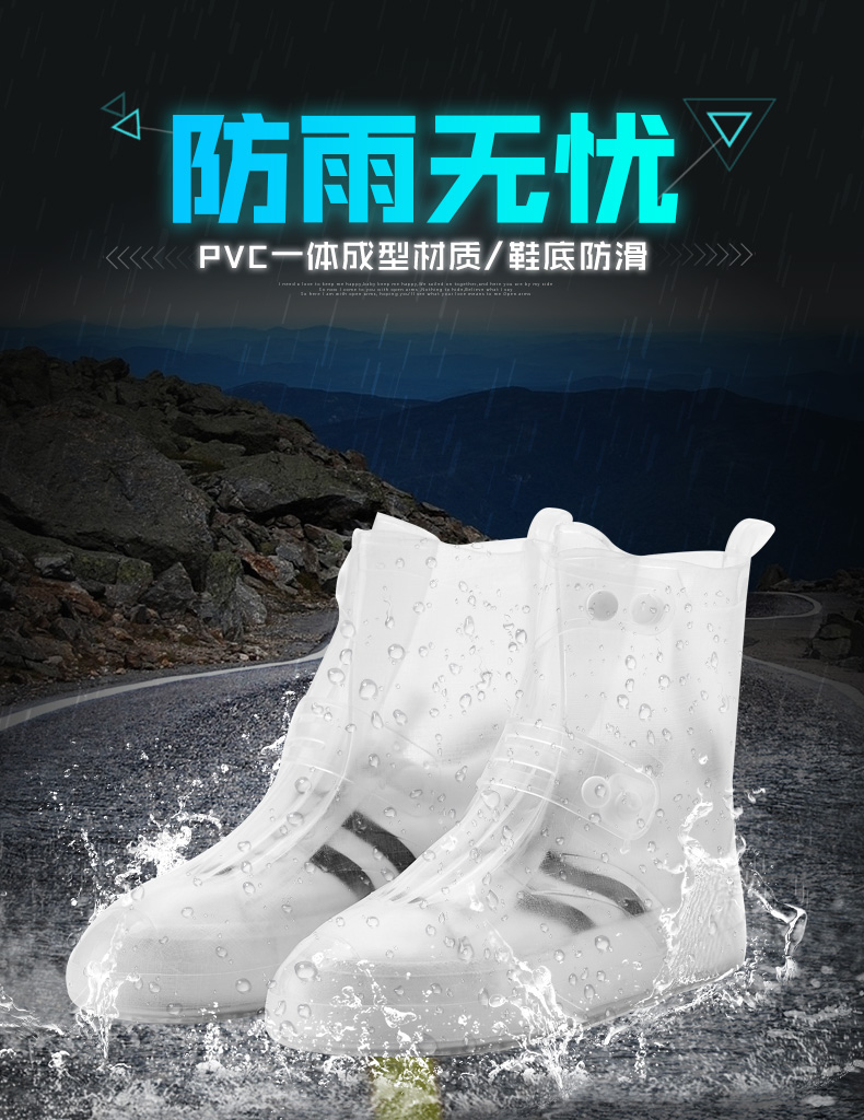 【亏本冲量!漏水包换!雨天雪天必备单品!】pvc一体成型材质,无任何接缝,防进水、渗水,双排扣设计,更好固定鞋套,耐撕拉材质,撕不坏的鞋套,加厚耐磨鞋底,可登山徒步,柔软易折叠,远行也不占地。
