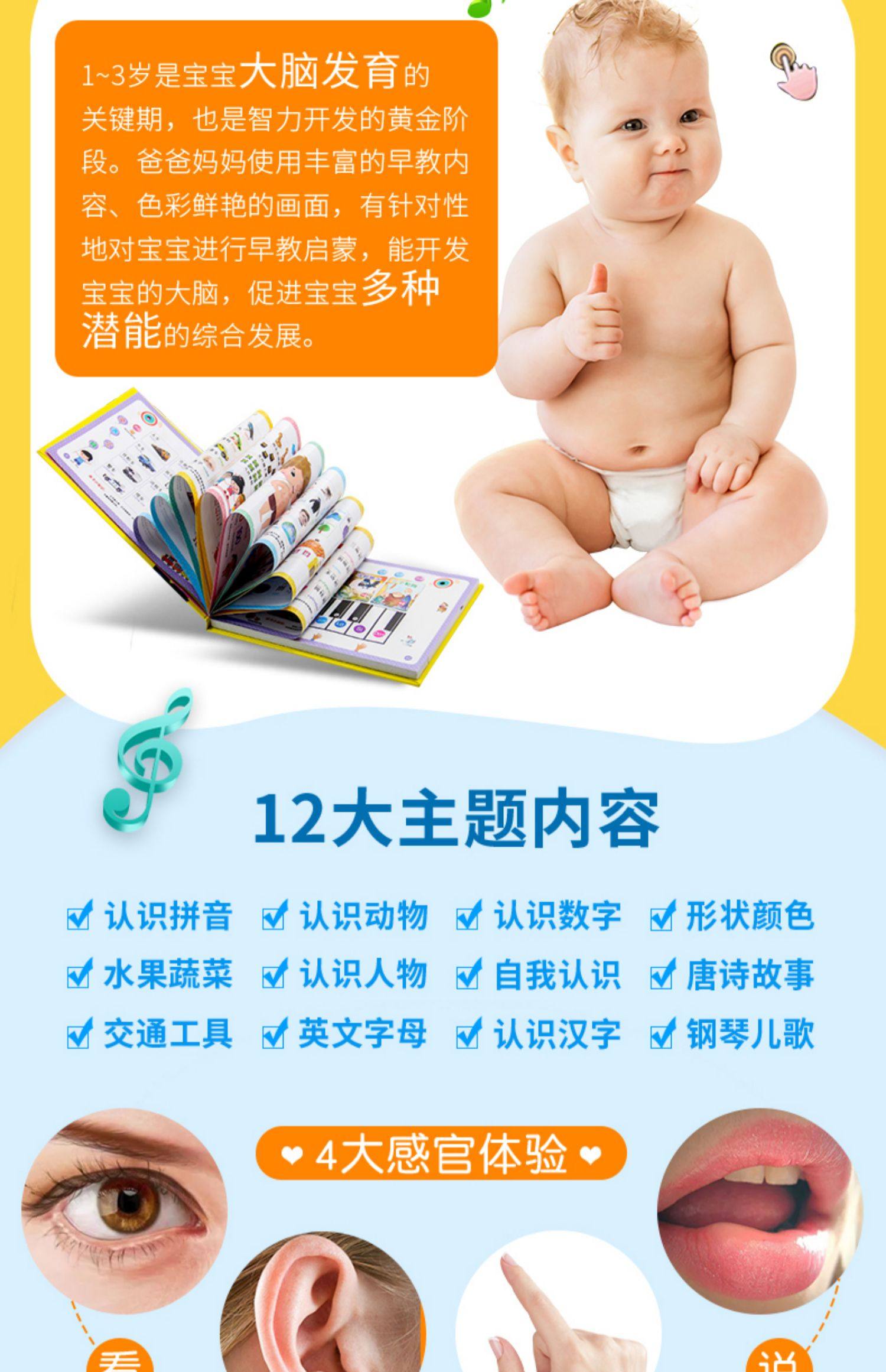 优质纸张,环保印染,会说话的趣味有声图书,想点哪里点哪里,趣味早教,边玩边学,USB充电,让孩子爱上学习。【部分地区顺丰包邮】