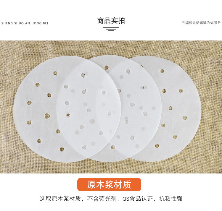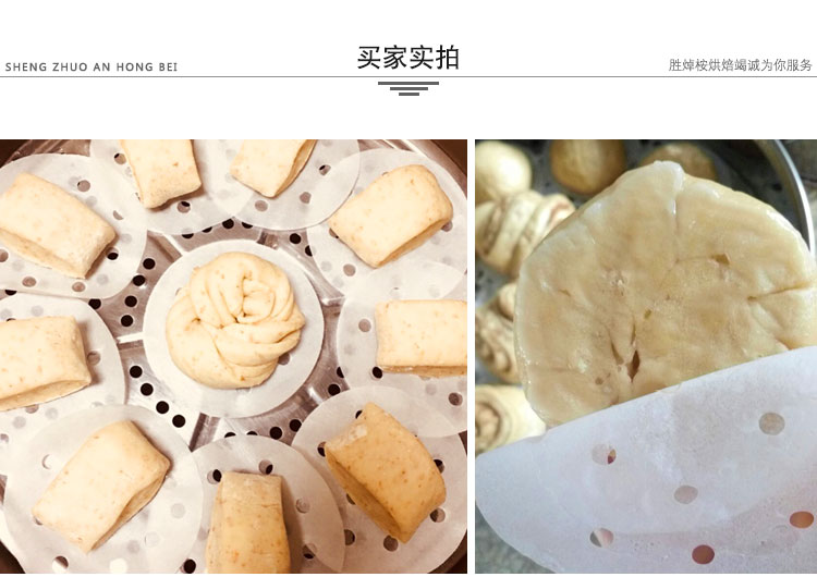 蒸笼垫纸不沾家用约400张,拍三包送一包,原木浆材质,透气打孔设计,可直接接触食物,不含荧光剂,速度抢!!!