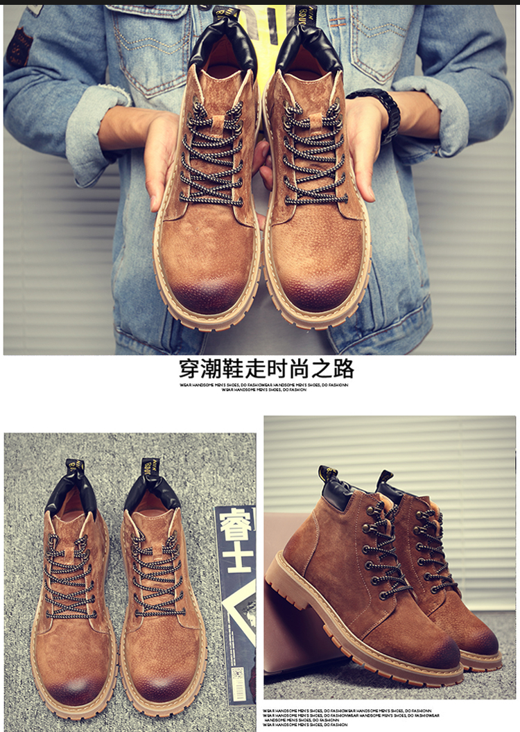 年度潮搭靴,怎么穿都出彩,复古系马丁靴,中帮男靴,潮鞋工装军靴皮靴,触感柔韧舒适,防滑耐磨底,行走不累脚!休闲百搭设计,从内到外,让你舒服到底~