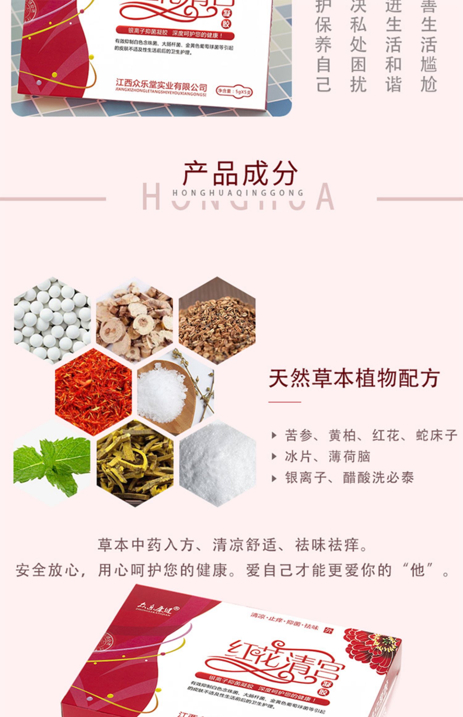 天然中药入方,医用净化灭菌, 无色无味,滋润紧致,松弛保养,抑菌止痒 解决霉菌、阴道分泌物过多、豆腐渣等问题 修护+理疗,双重呵护您的在美!