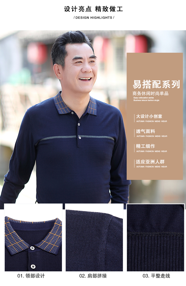 北极绒春秋款爸爸针织衫,翻领商务T恤,时尚休闲,柔软亲肤,舒适面料。提升舒适感。易搭配。透气面料,精工细作,有立体感,快来给爸爸选一件美衣吧!【赠运险费】