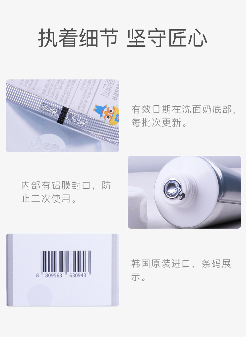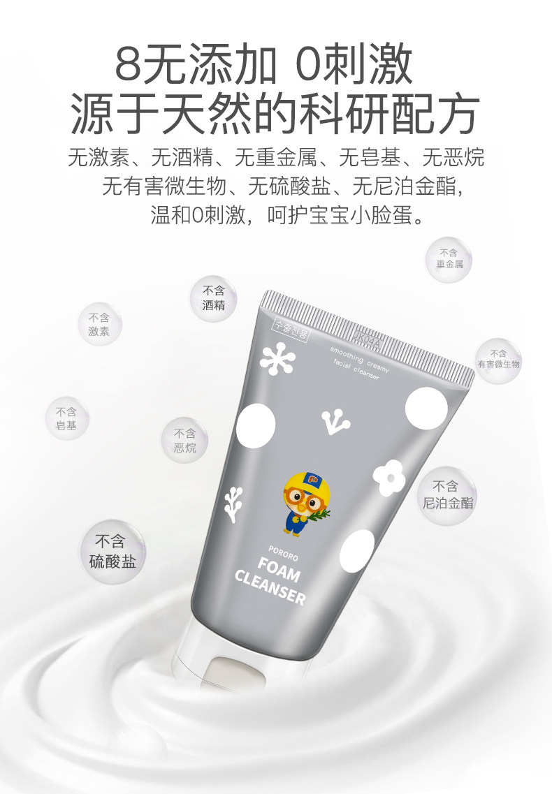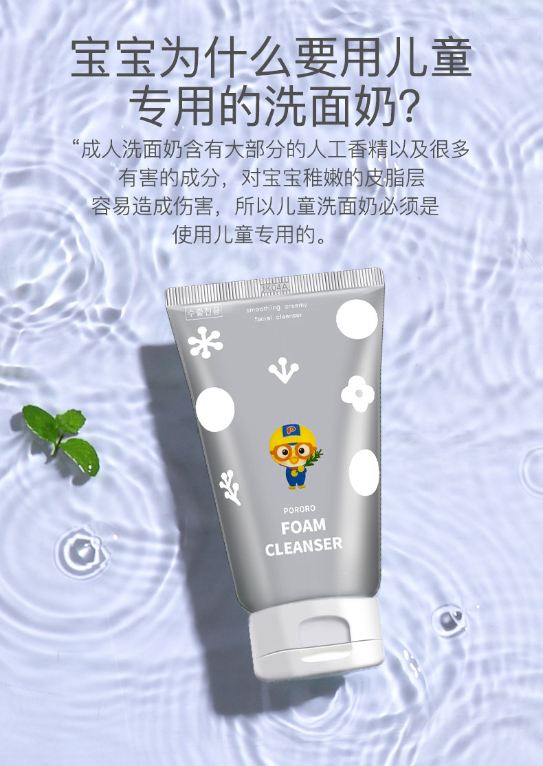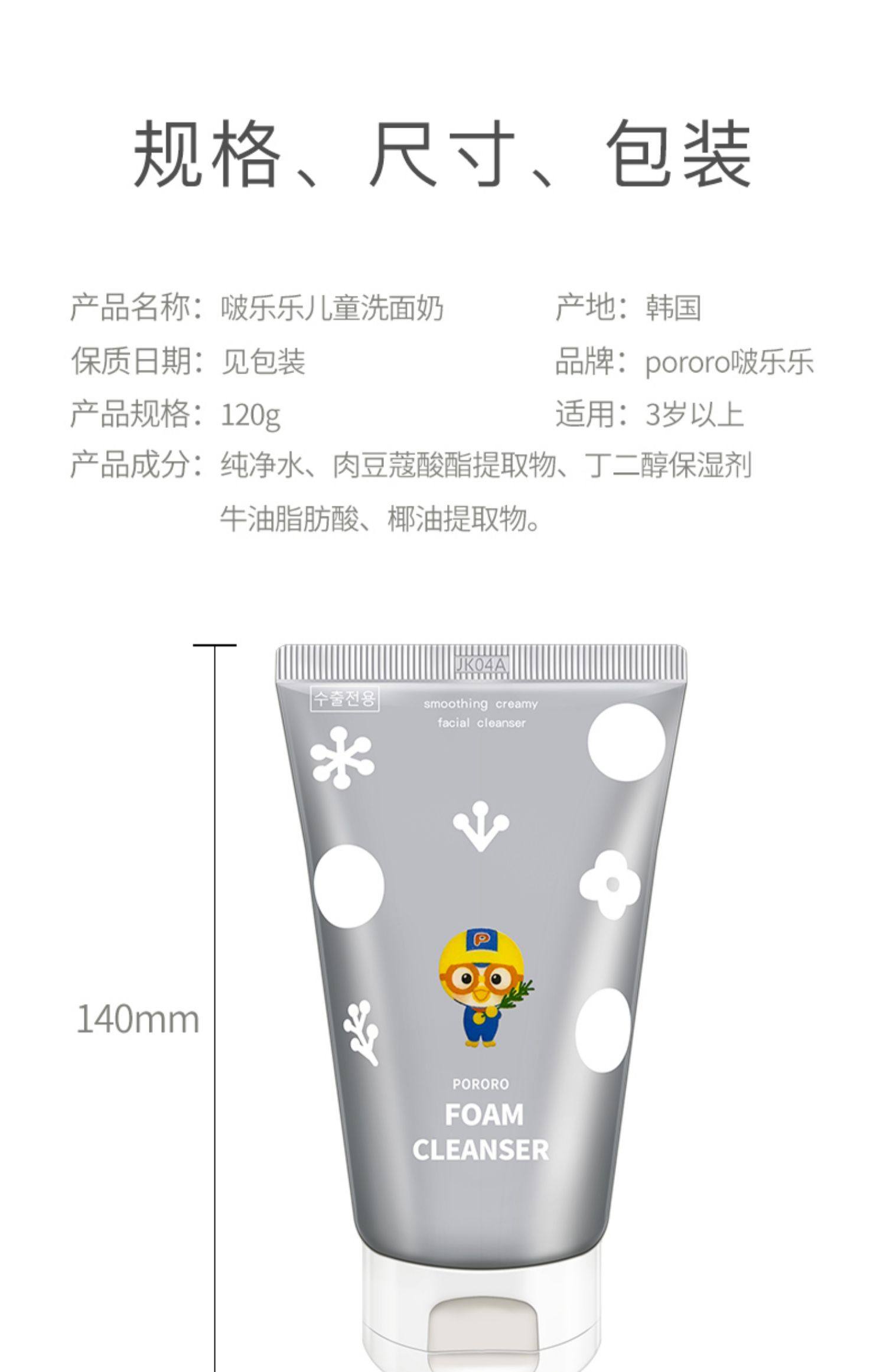 pororo啵乐乐儿童专用洗面奶,泡沫丰富易清洗,宝宝舒适无刺激,萃取植物精油,科学草本配方,可以有效舒缓宝宝娇嫩肌肤,使肌肤更加清爽。