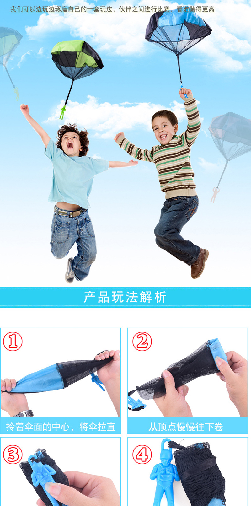 户外降落伞让孩子益智的玩具~不仅是玩具,还能开发儿童脑力,激发孩子想象力!无甲醛健康材质,圆润光滑不伤手外形!越玩越聪明!