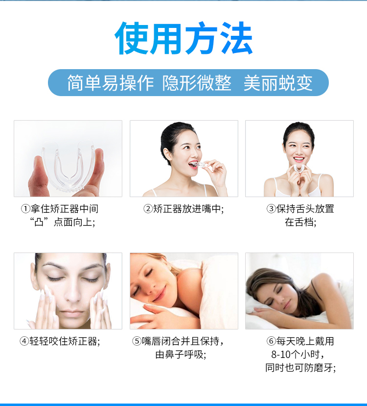多功能牙套,食品级材质,针对牙齿问题纠正龅牙地包天,牙齿拥挤,(佩戴58天无效退全款)更加安全,方便,省钱省心,便捷可摘,带着睡觉让牙齿改‘斜‘归正~~~