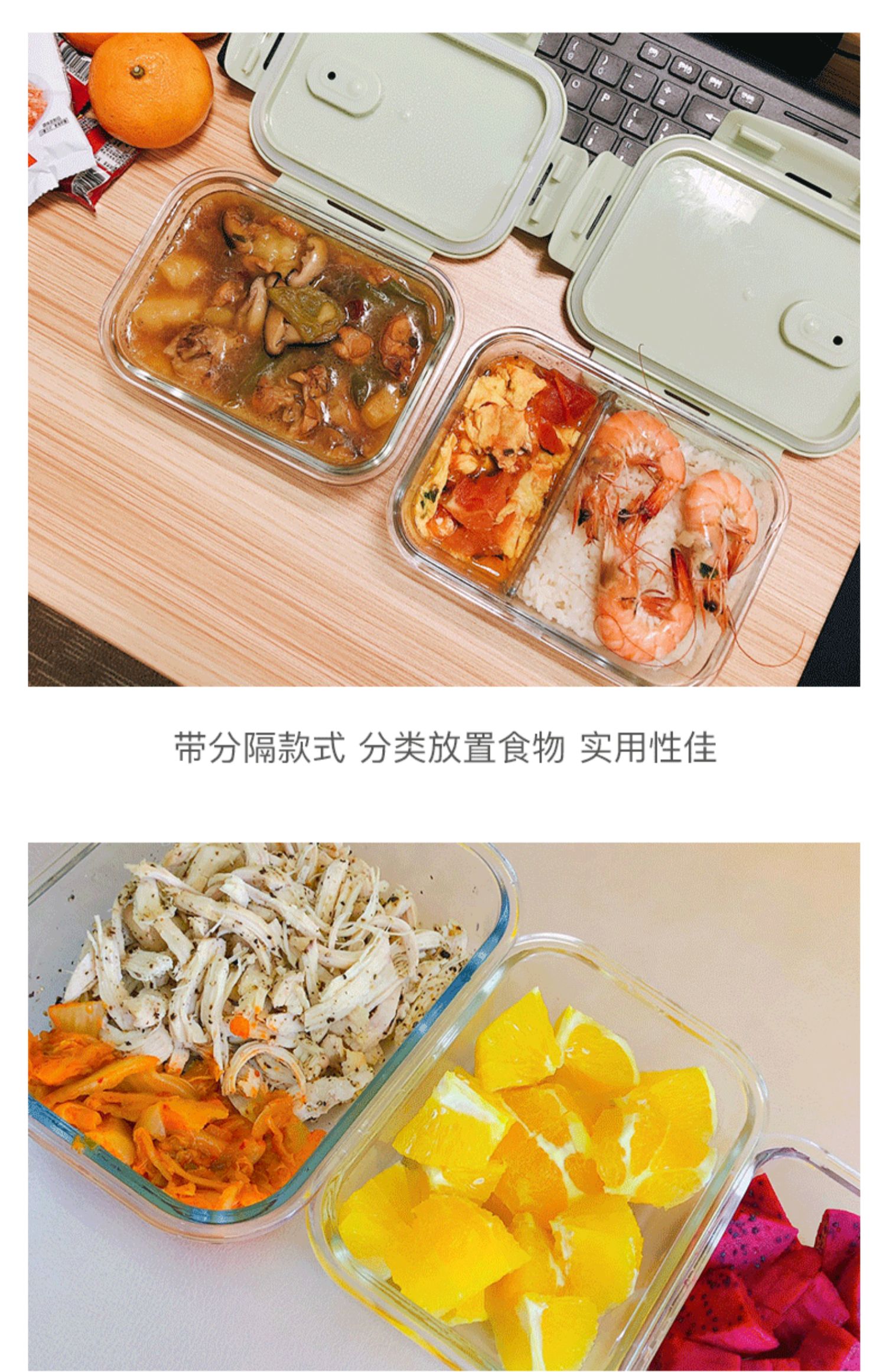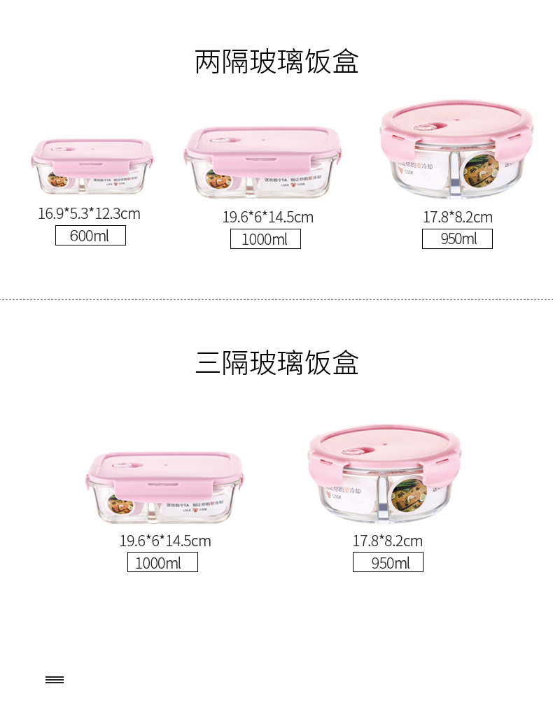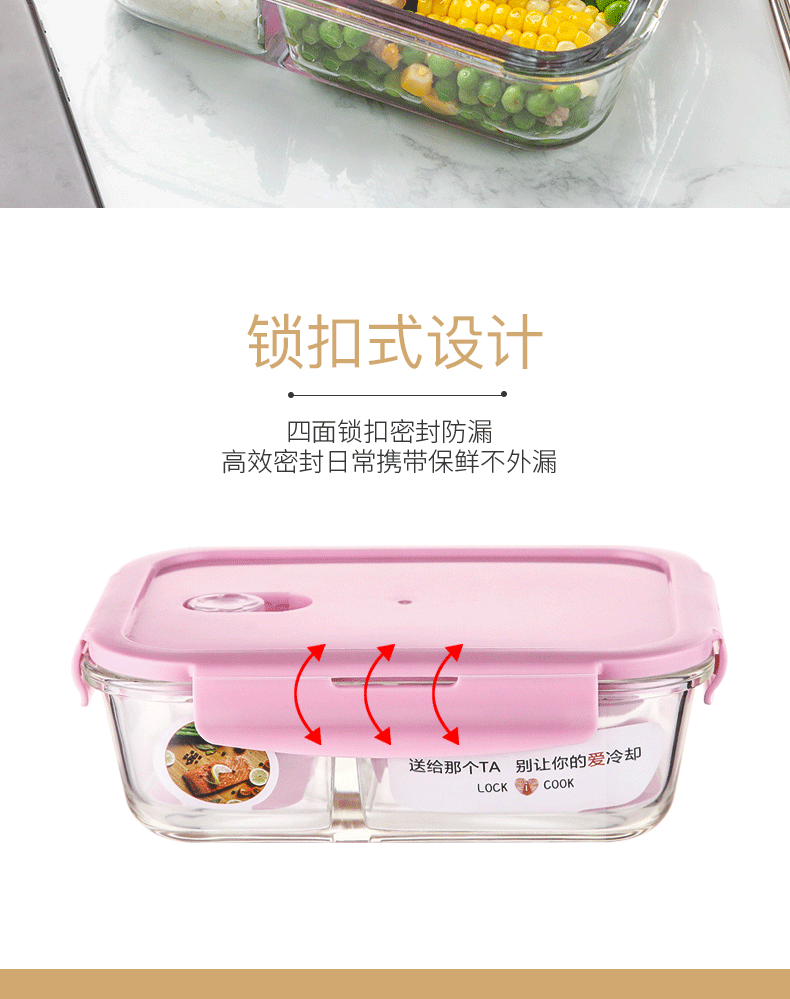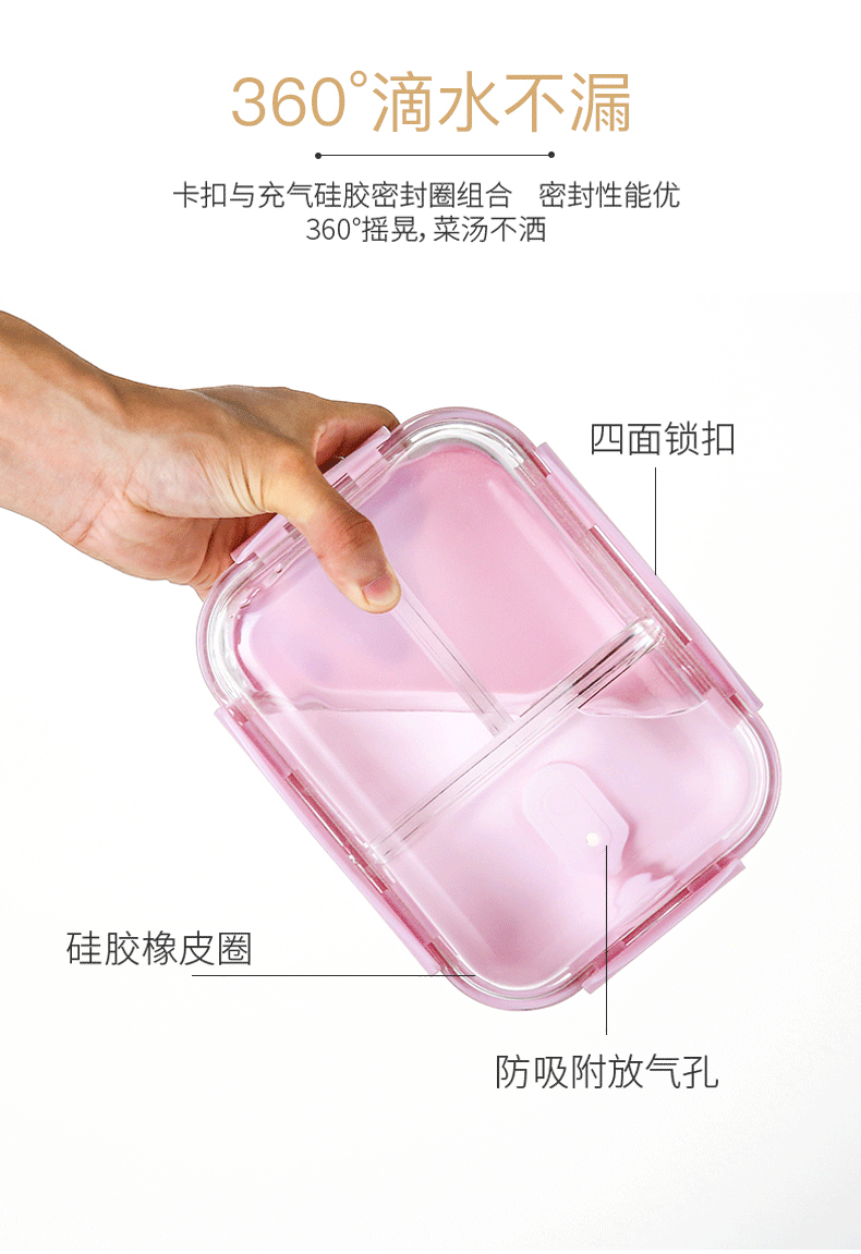 网红达人力荐单品!高硼硅玻璃材质,耐热400℃,微波炉烤箱均可用!采用透明玻璃盒身设计,既干净又好看,美味不将就!卡扣与充气硅胶密封组合,360º摇晃滴水不漏!上班族的便当盒【赠运费险】