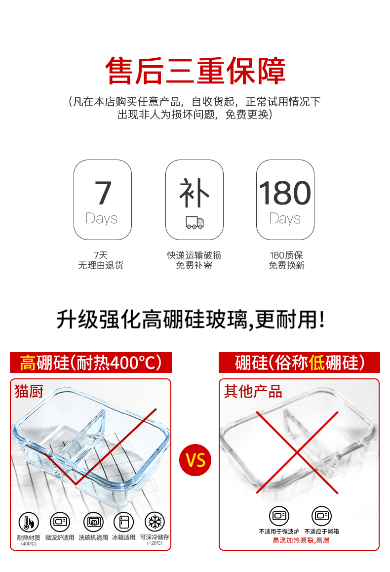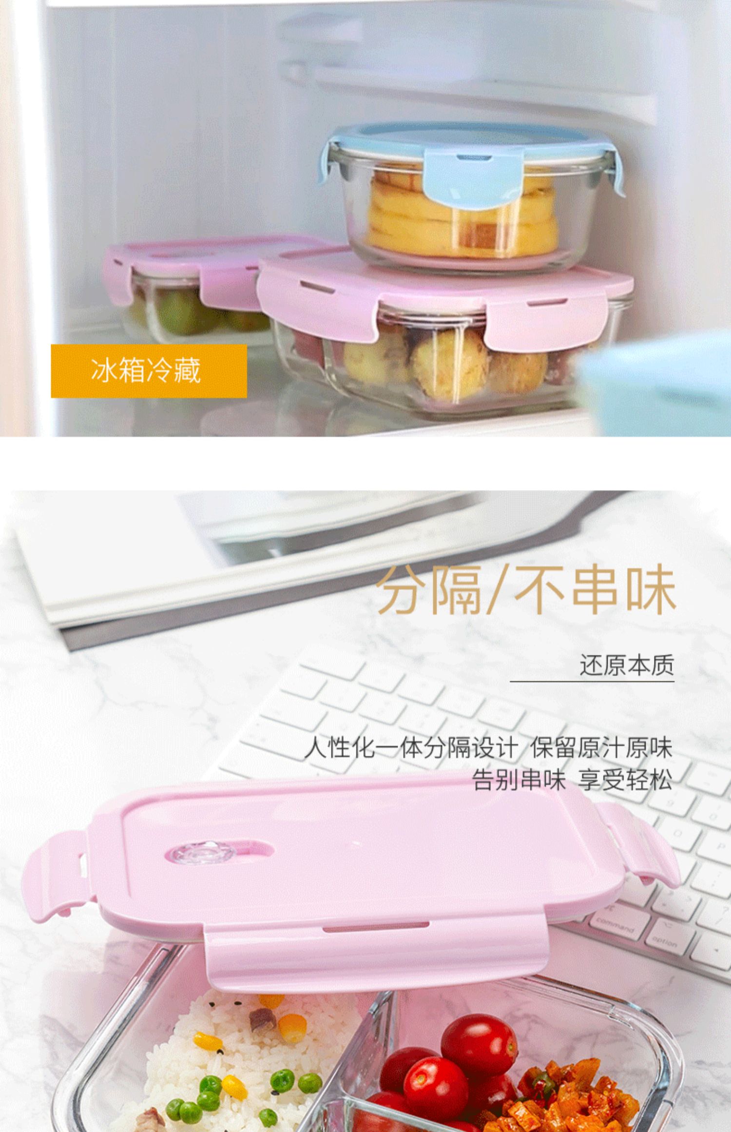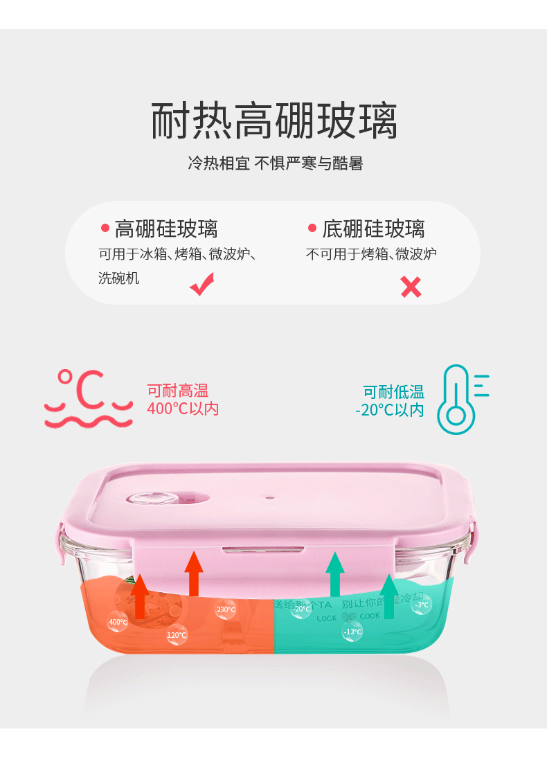网红达人力荐单品!高硼硅玻璃材质,耐热400℃,微波炉烤箱均可用!采用透明玻璃盒身设计,既干净又好看,美味不将就!卡扣与充气硅胶密封组合,360º摇晃滴水不漏!上班族的便当盒【赠运费险】