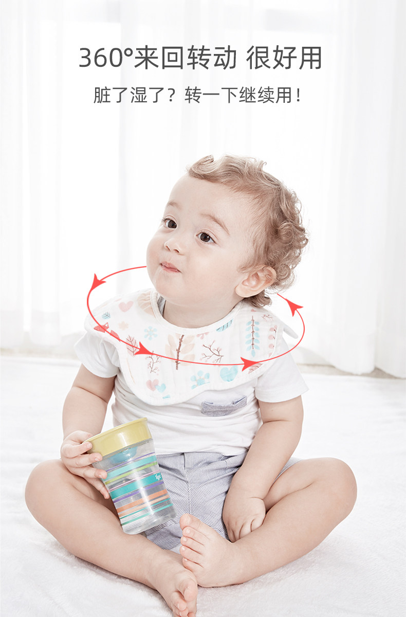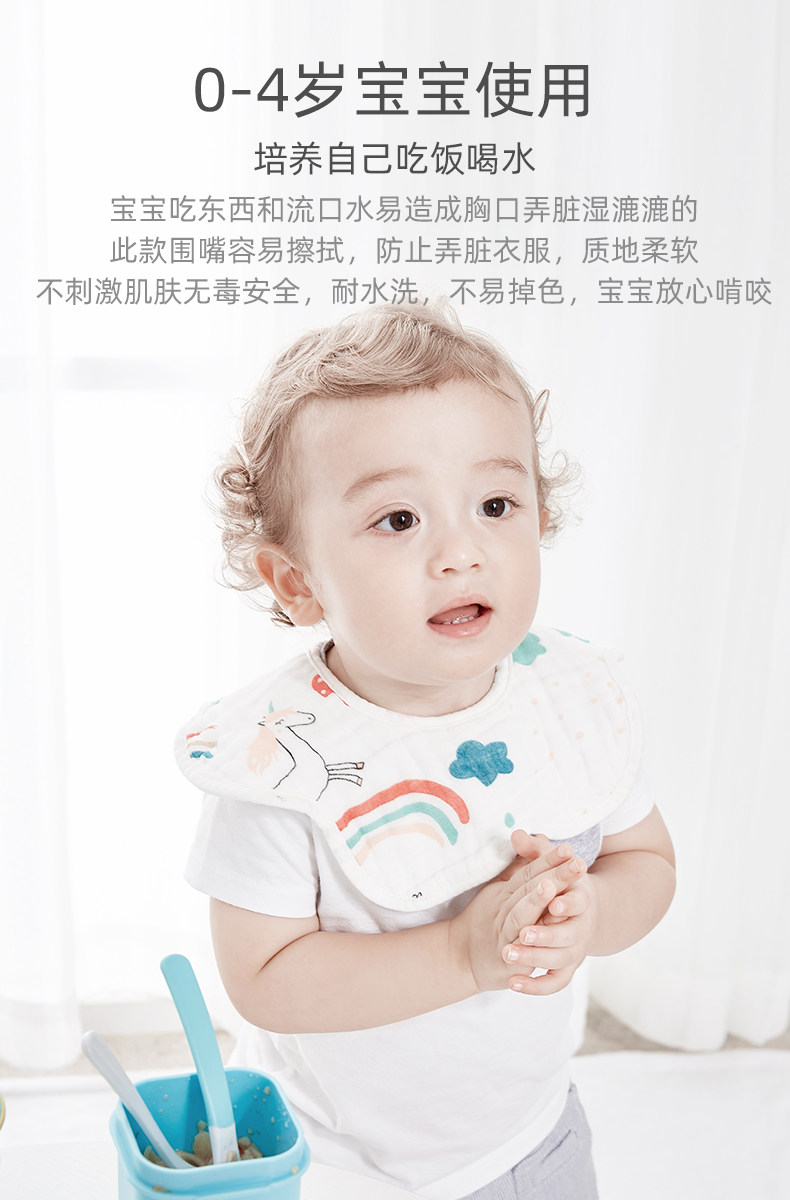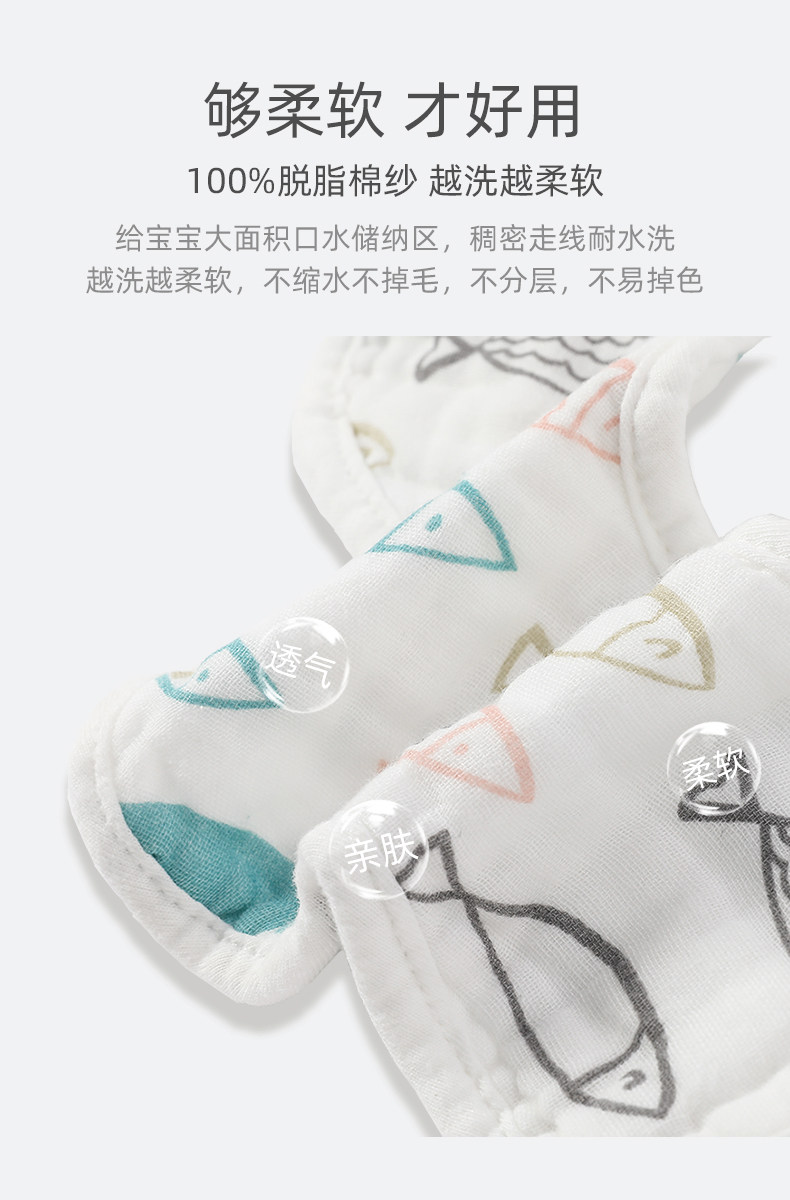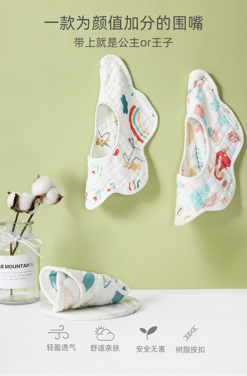 超低价,三条装,柔软,瞬吸,360°围嘴,0荧光剂,4层棉纱更吸水,耐洗,吸水力强,瞬间吸收,零荧光剂,给宝宝好的。不要错过。