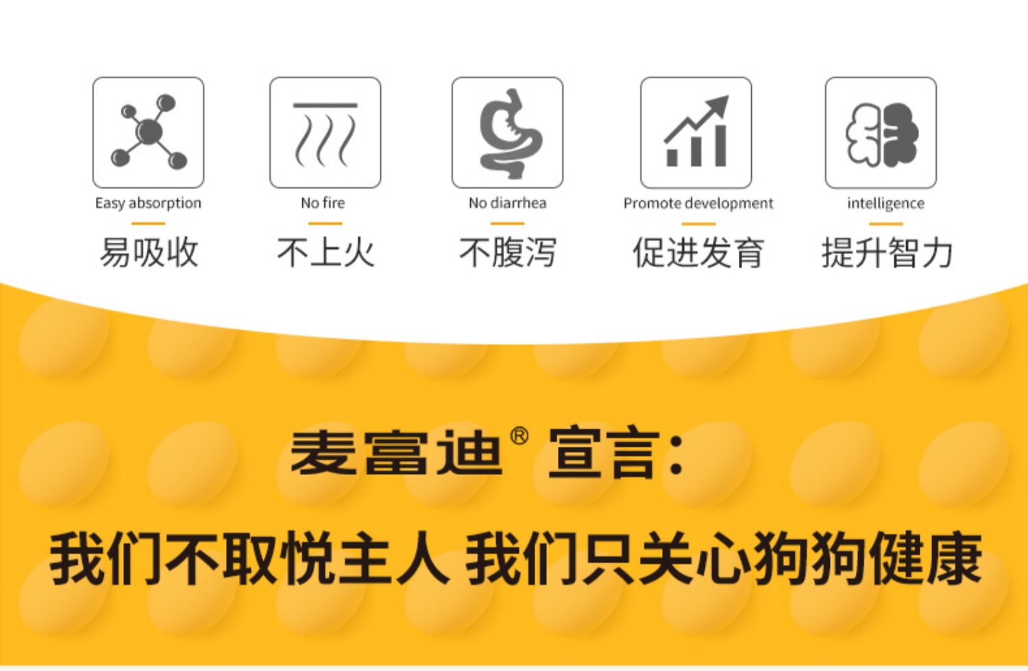 麦富迪天猫专卖店,正品保证,专为幼犬设计,添加蛋黄颗粒,蛋黄中富含卵磷脂,双拼美味,多种营养,狗狗更爱吃