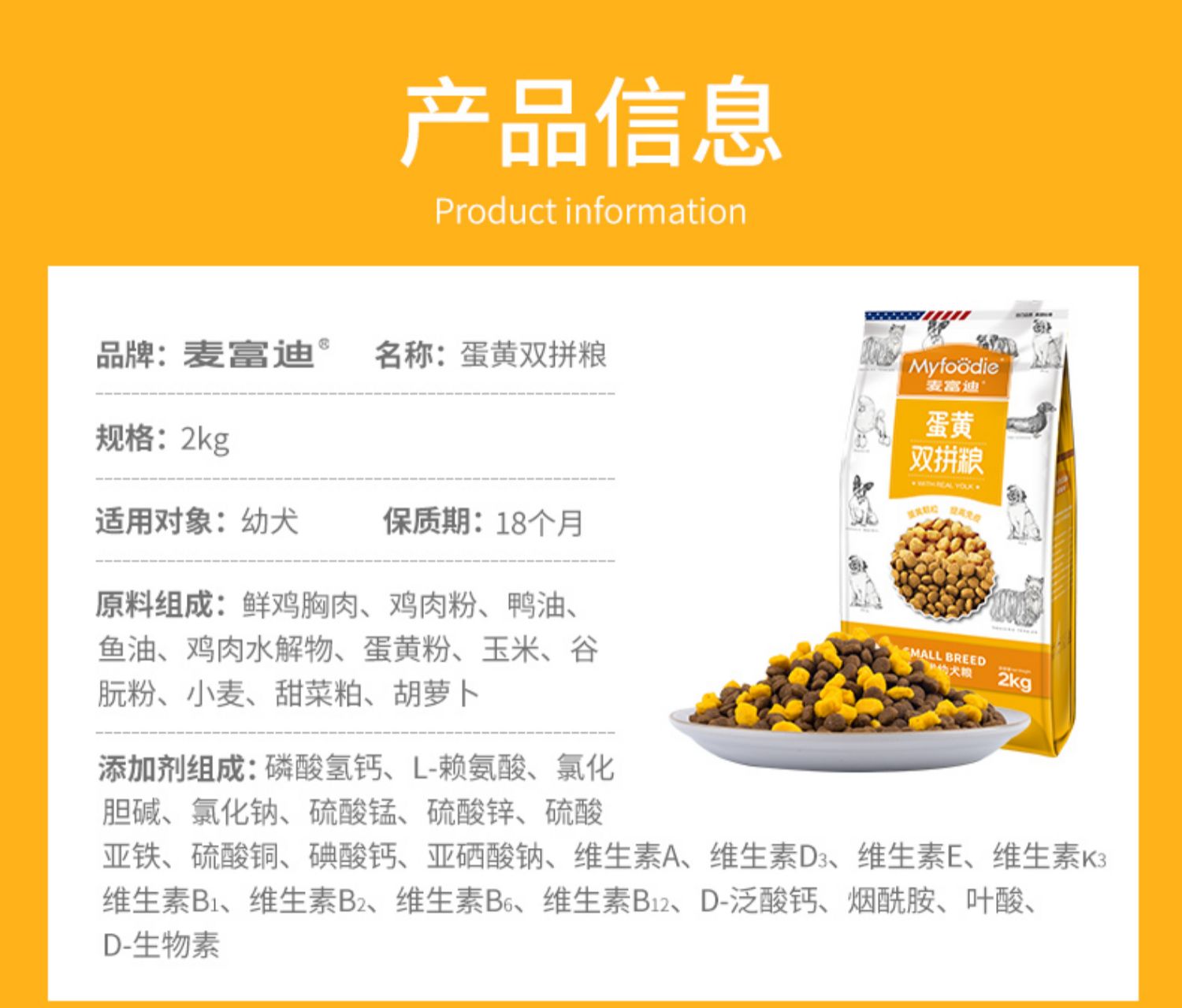 麦富迪蛋黄双拼全价小型犬全期粮2kg