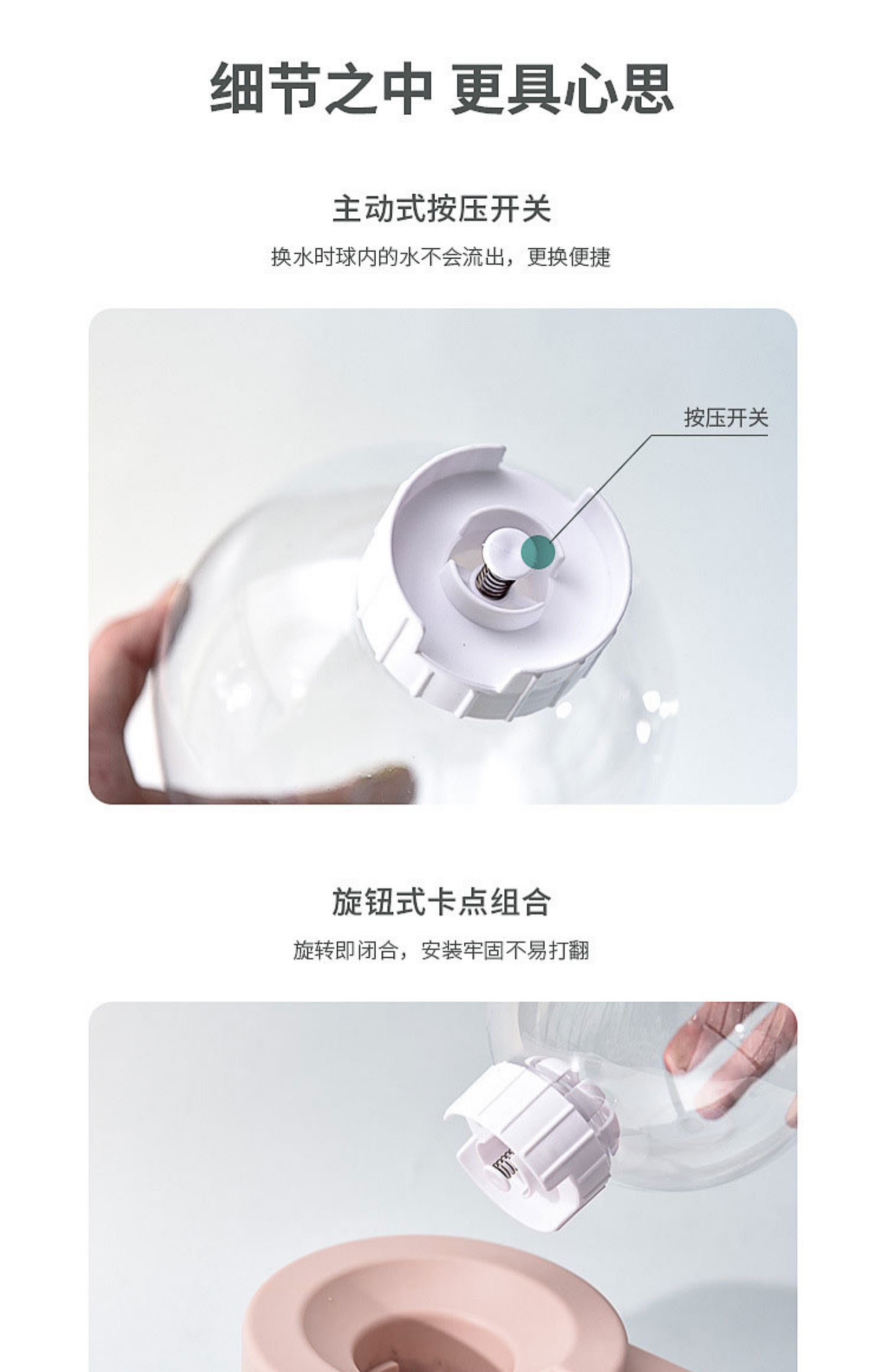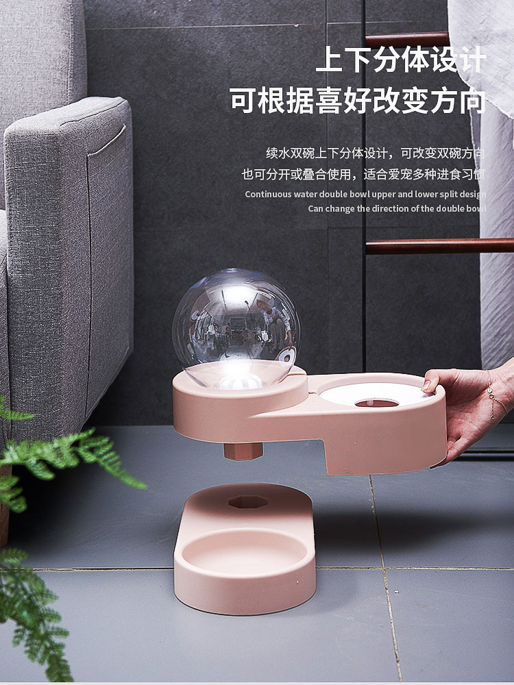 犬猫通用,高颜值双色可选,储水+喂食两用!1.8L超大储水量+上下可旋转分离改变任意方向,防湿嘴隔板,全程自动补水更省心!品质更出众!