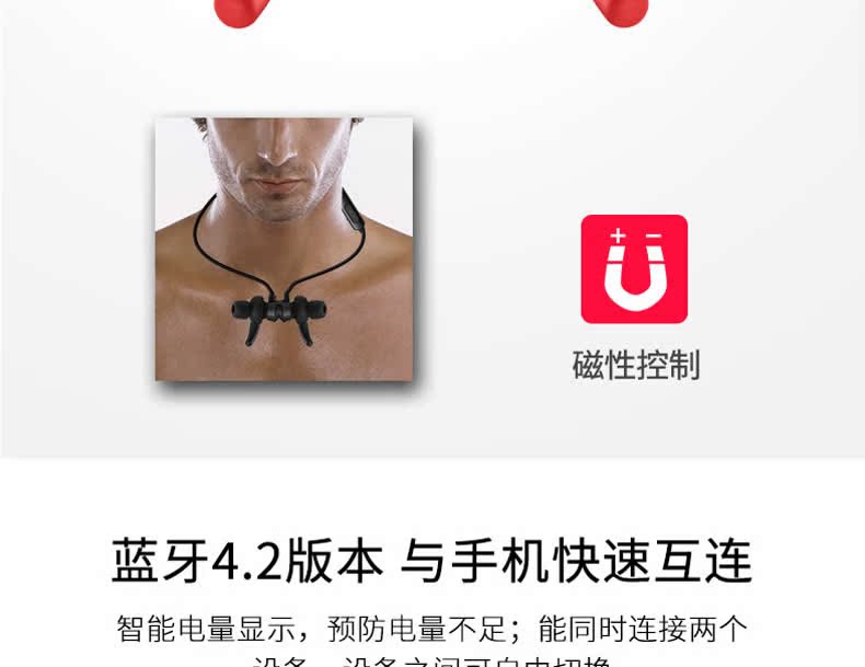 【天猫正品】12小时强劲续航,无线蓝牙,狂甩不掉,磁吸收纳,临场音效,声临其境,超大震膜,震撼低音,防水防汗,亲肤材质,运动跑步达人必备!【赠运费险】