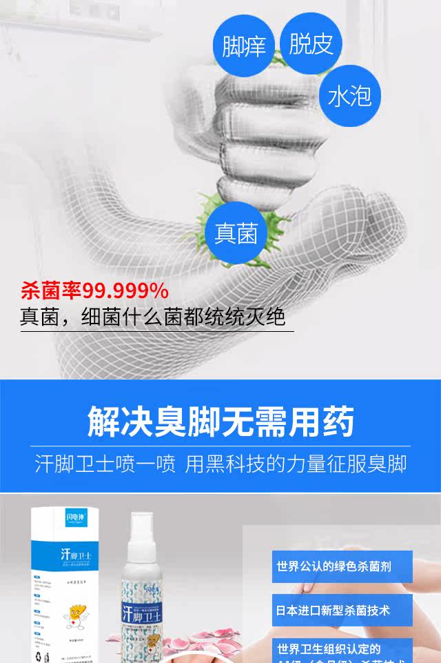 【闪电神】汗脚卫士杀菌除臭脚痒喷剂
