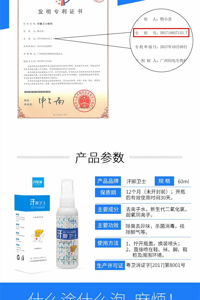 汗脚卫士喷剂60ml,祛除脚气,杀菌消毒,鞋袜除臭,从源头扼杀臭味,黑科技杀菌,不会产生抗药性,强效杀菌持续有效~