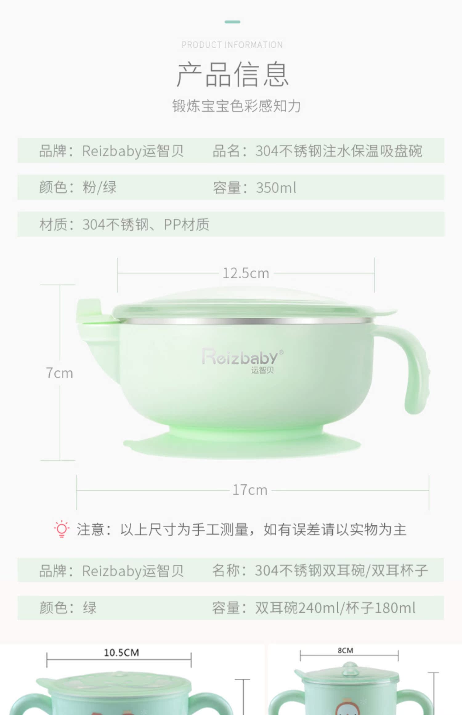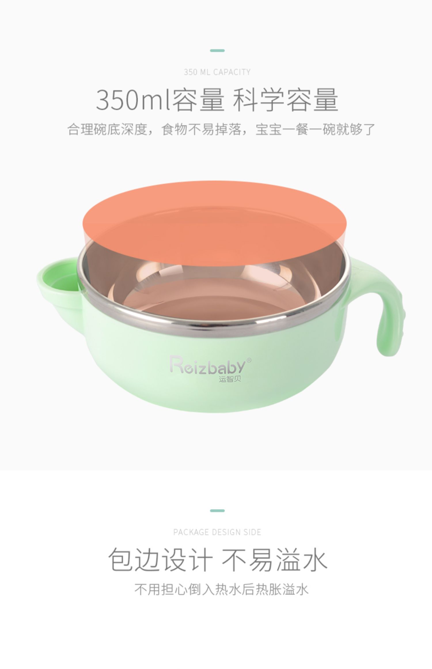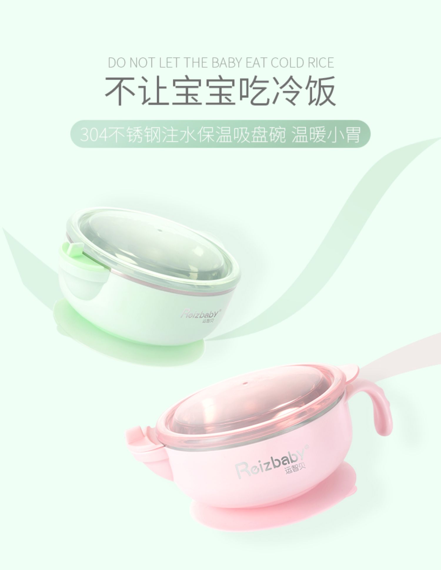 食品级加厚PP碗套、304不锈钢材质,安全健康,不锈钢包边,防漏水,硅胶吸盘,不易打翻,注水控温,冬季长效保温,夏季快速降温,贴心呵护宝宝肠胃健康~