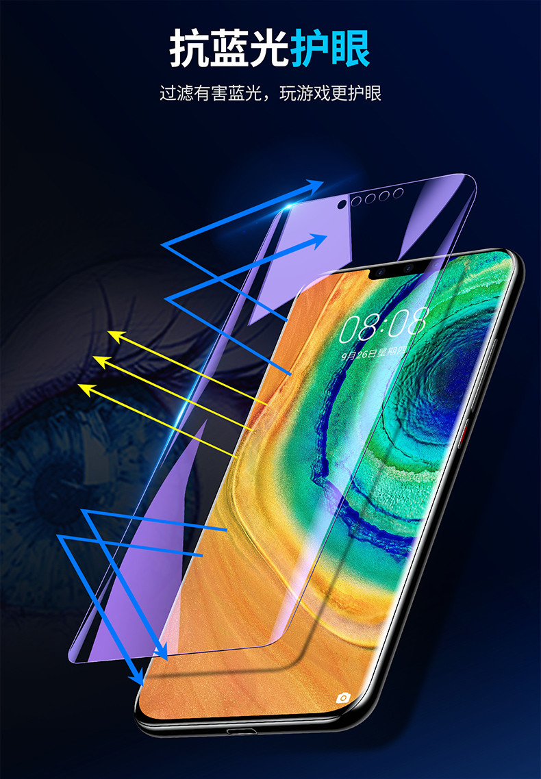 华为钢化软膜p30系列高清水滴膜,送10好礼,高清,蓝光,磨砂自动修复,贴坏包赔!送贴膜神器+后膜!【正品保障】【七天无理由退换】