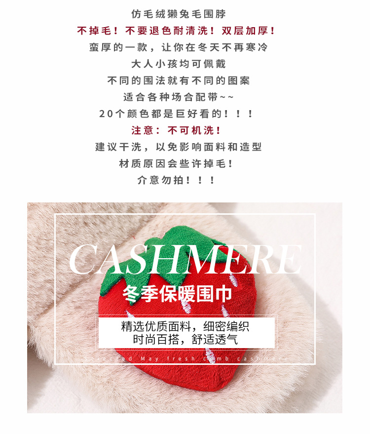 寒风瑟瑟,你需要一条颜值与温暖兼具的围巾!仿毛绒獭兔毛,不掉毛敲舒服,少女色系,好看的不要不要的,双层加厚让你这个冬天不再寒冷!随意搭配整体时髦感飙升~小姐姐必入